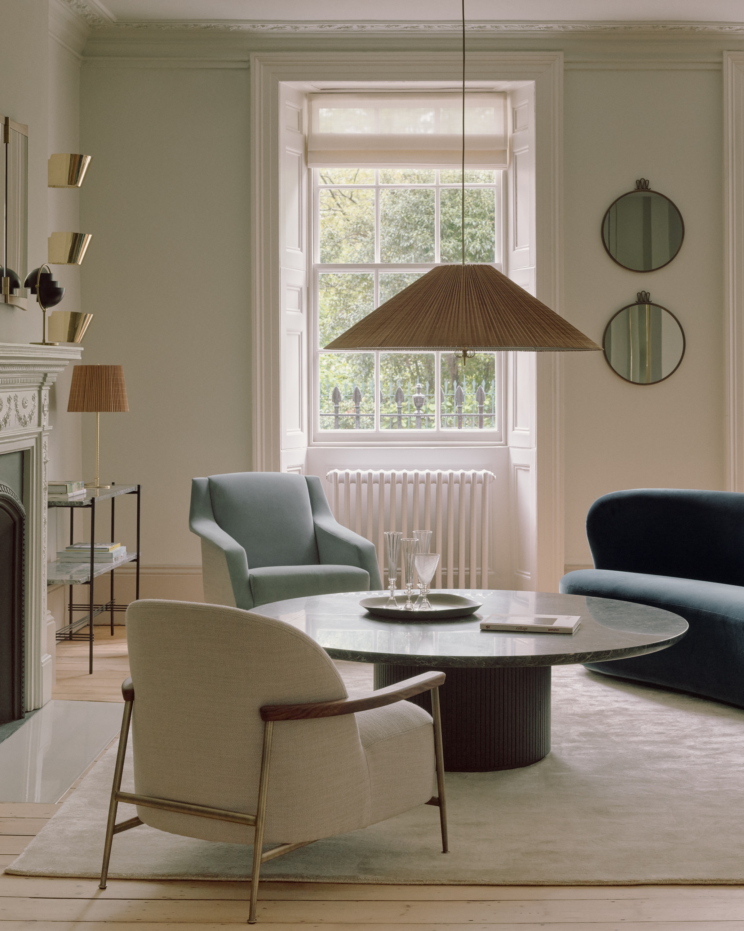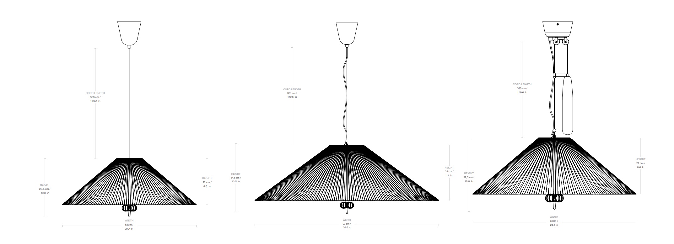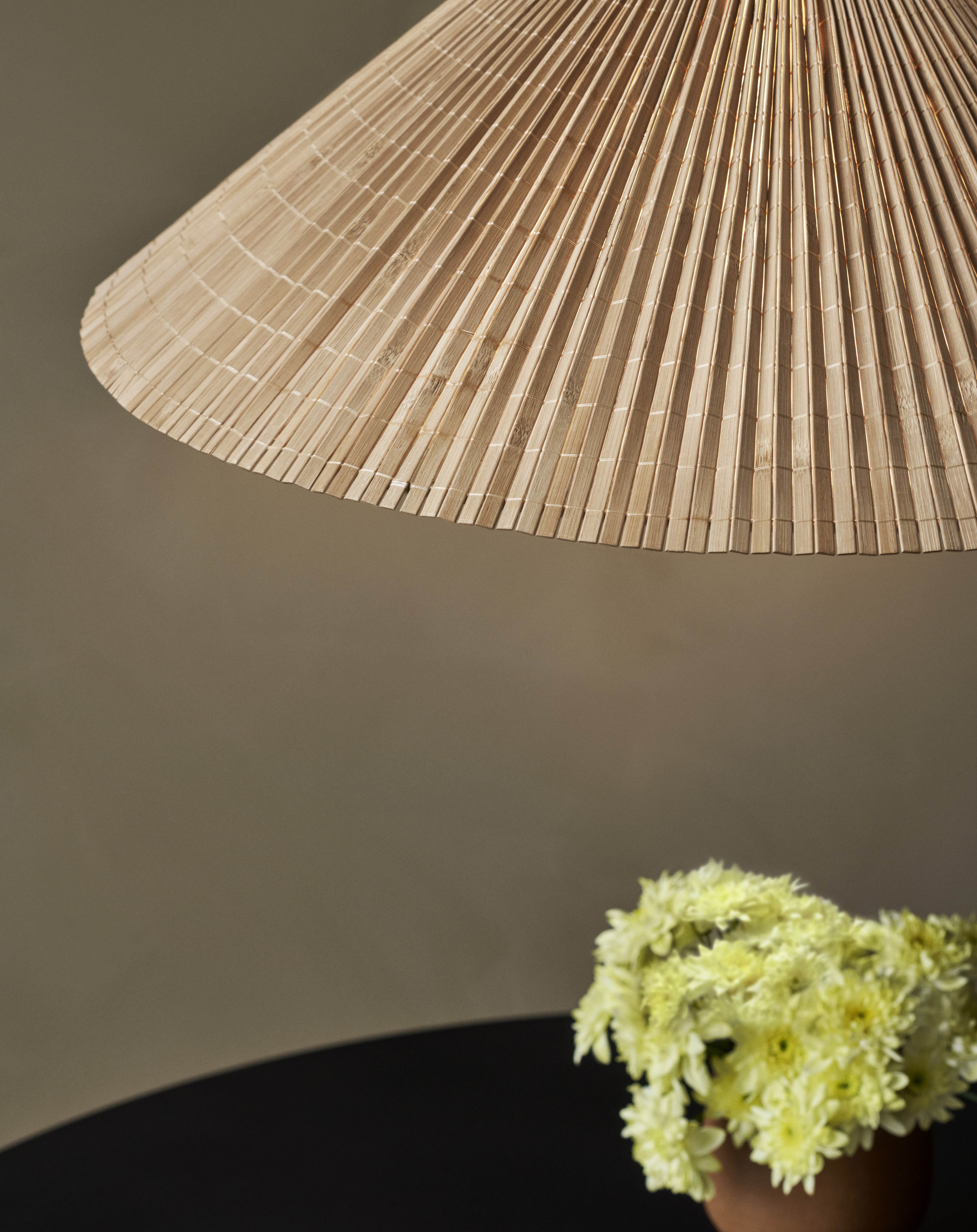 Подвесной светильник 1972 — это гармоничное сочетание природных материалов и изысканной латуни. Главная особенность модели — конусообразный абажур из бамбуковых ламелей, который создает неповторимую атмосферу уюта и мягкого тепла. Бамбуковые планки вручную сшиваются в плиссированное полотно и крепятся к проволочному каркасу. Между слоями бамбука проложена льняная подкладка. Тканевый диффузор под лампами исключает слепящий эффект, а фирменная латунная деталь в нижней части придает лампе завершенный характер. Регулируемая модель оснащена уникальным латунным механизмом-противовесом, позволяющим регулировать высоту светильника «на лету».