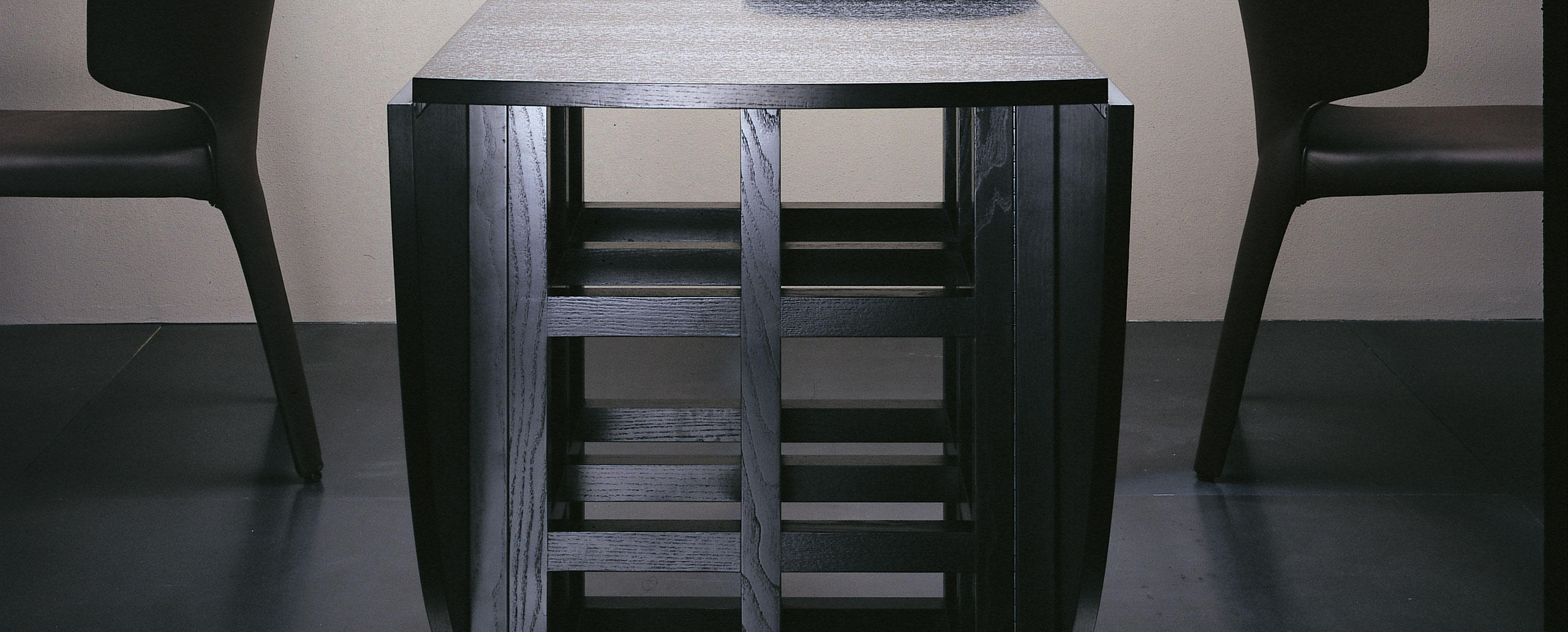 D.S.1 - это стол-трансформер из массива вишни, окрашенного в черный цвет. Стол раскладывается с двух сторон. Эта модель была разработана Чарльзом Макинтошем еще в 1918 году и перевыпущена фабрикой Cassina в наше время. Стол D.S.1 доступен в бордовом цвете. Более подробная информация находится в PDF инструкции.