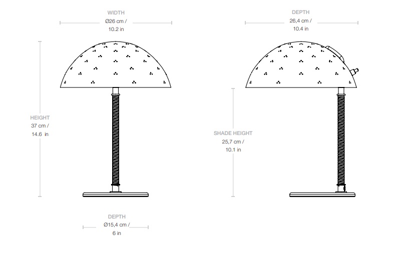 Настольная лампа 9209 Table Lamp — это знаковый предмет промышленного дизайна XX века, модель сочетает в себе функциональность и изысканный декор. Изогнутый латунный кронштейн удерживает уникальный абажур, украшенный фирменным узором из треугольных перфораций, который требует высочайшей точности ручной работы. Абажур из полированной латуни направляет свет вниз, а крошечные отверстия создают эффект «звездной россыпи», добавляя текстуры свечению и атмосферности помещению.