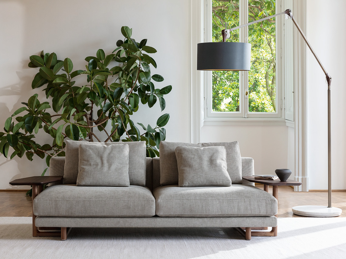 Диван ABACUS также отличается высокой функциональностью. Обитый подлокотник легко превращается в небольшой столик, который можно закрепить на ножке основания. Эта деталь делает диван удобным и практичным. Она позволяет использовать его не только для отдыха, но и для работы или приёма гостей. Ножка основания, выполненная из массива орехового дерева Canaletta, придаёт дивану дополнительную прочность и эстетическую привлекательность.