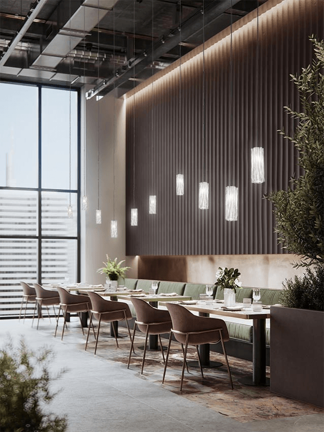 Многоуровневая структура подвески придаёт светильнику изысканность и визуально выделяет его среди других элементов интерьера. Благодаря своей уникальной конструкции, Accordeon Vertical может стать центральным акцентом в вестибюлях отелей, ресторанах, барах и других общественных пространствах, где важно создать атмосферу уюта и комфорта.