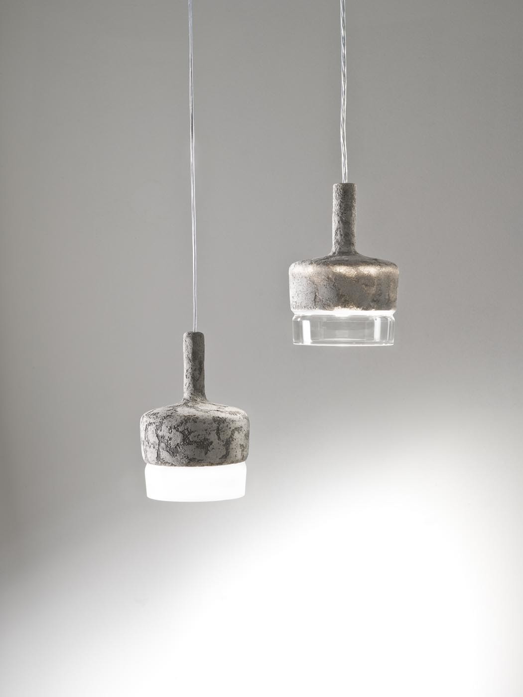 Очень необычный и стильный подвесной светильник. Абажур выполнен из стекла (матового или прозрачного) и покрыт неровным слоем цемента, что создает интересный зрительный эффект. Этот светильник несомненно сможет удивить. Он без труда впишется в современный интерьер и станет его изюминкой.