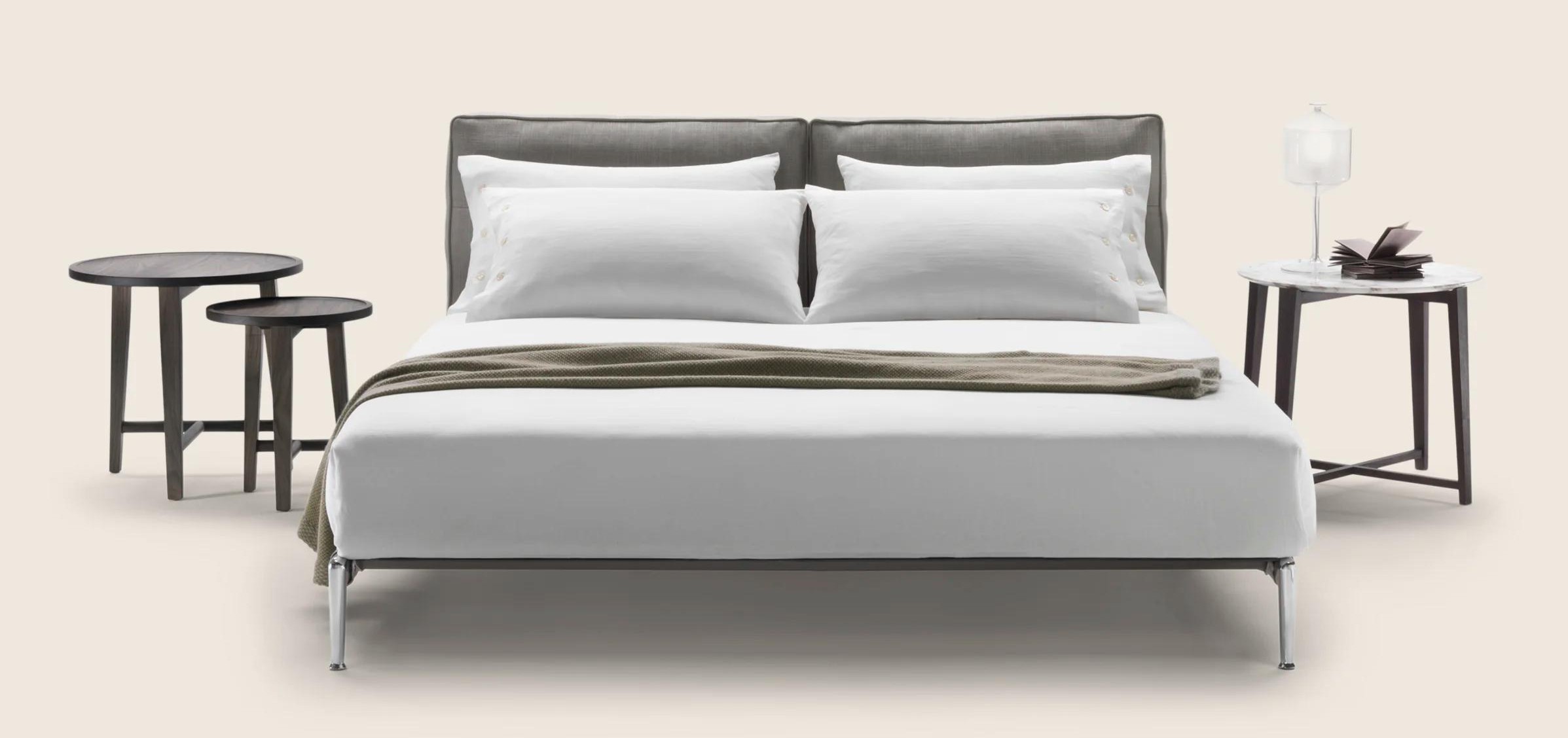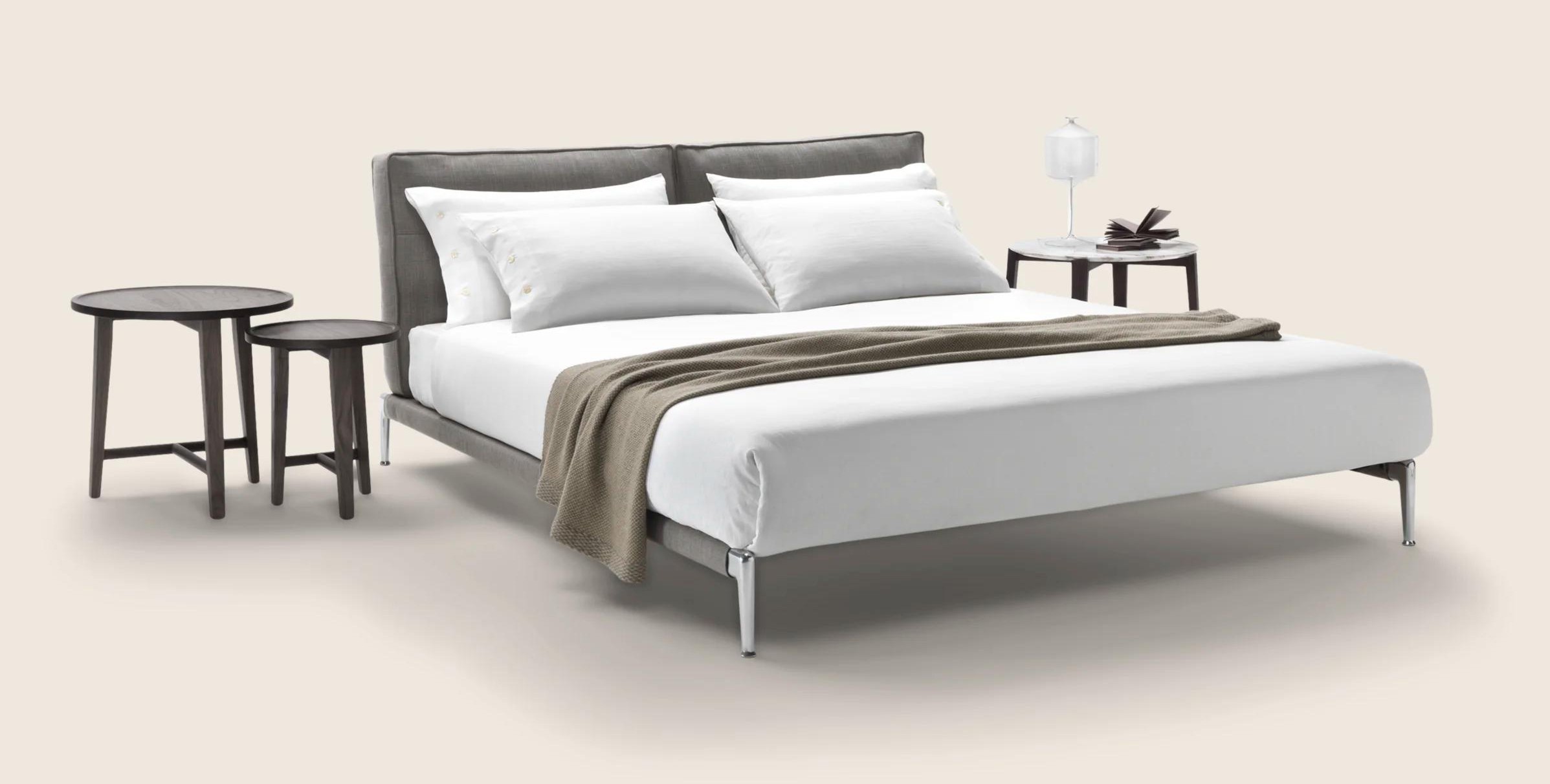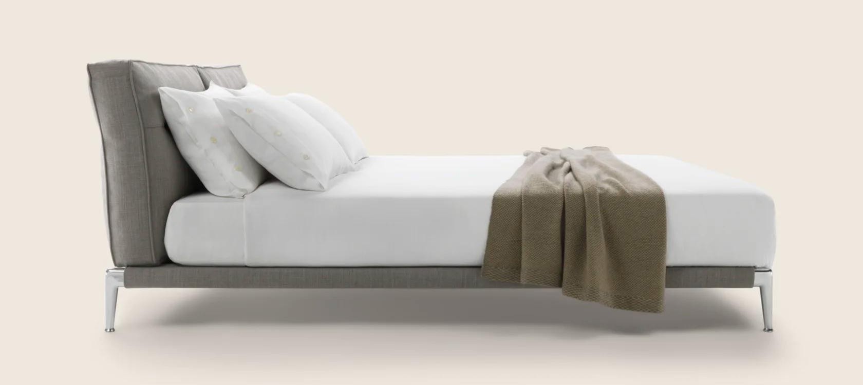 Лаконичный контур кровати Adda позволяет подобрать для её обивки любую ткань или кожу из коллекции Flexform. Благодаря этому кровать легко вписать в любой интерьер.