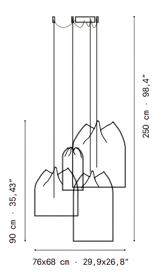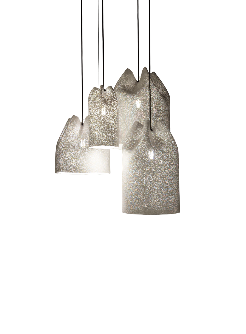 Для создания разнообразных композиций доступны четыре размера подвесных светильников. Их можно комбинировать на разной высоте, что позволяет реализовать множество интересных решений. Композиция Agasallo объединяет четыре модели этой коллекции, превращая их в великолепную люстру.