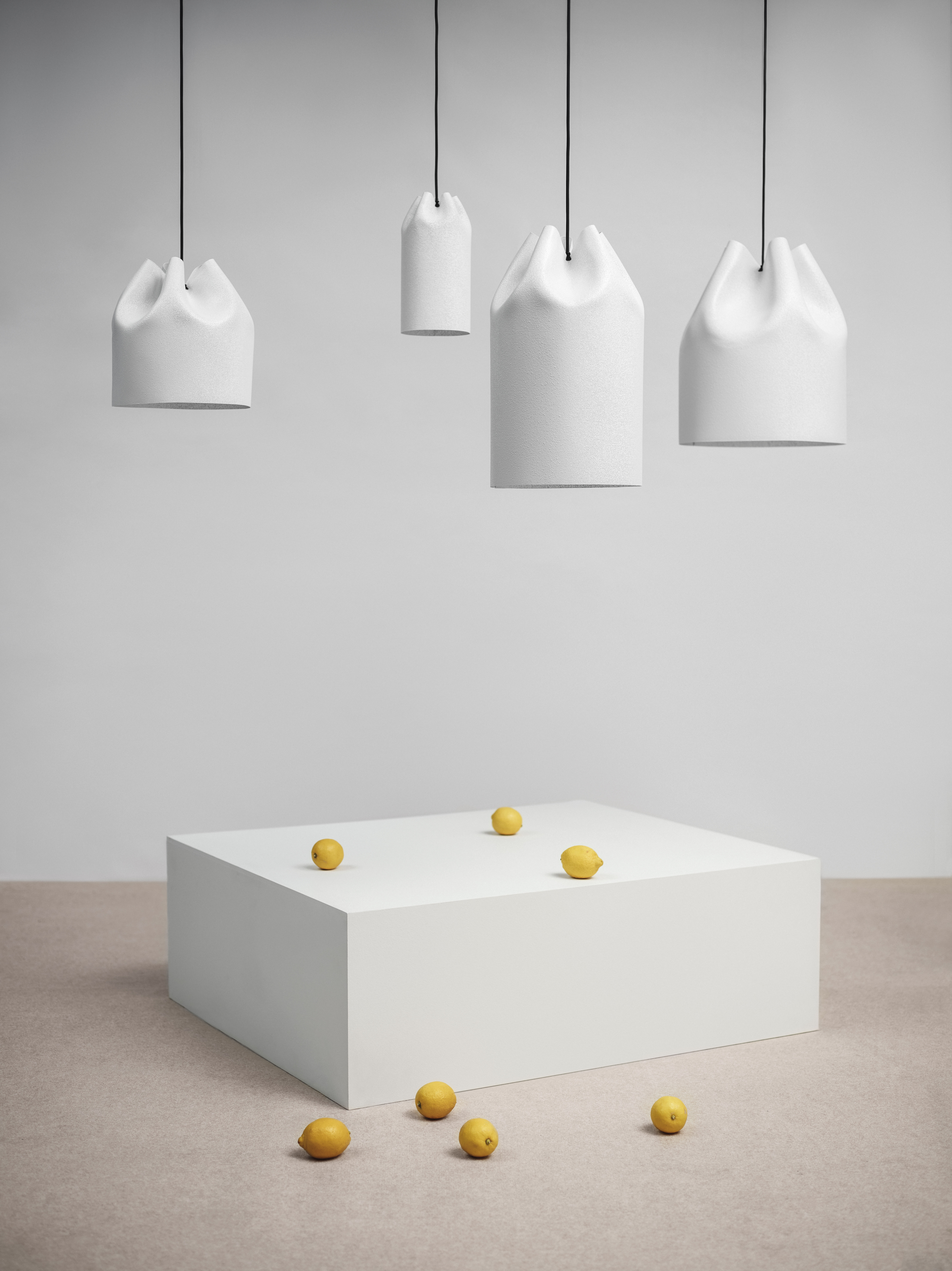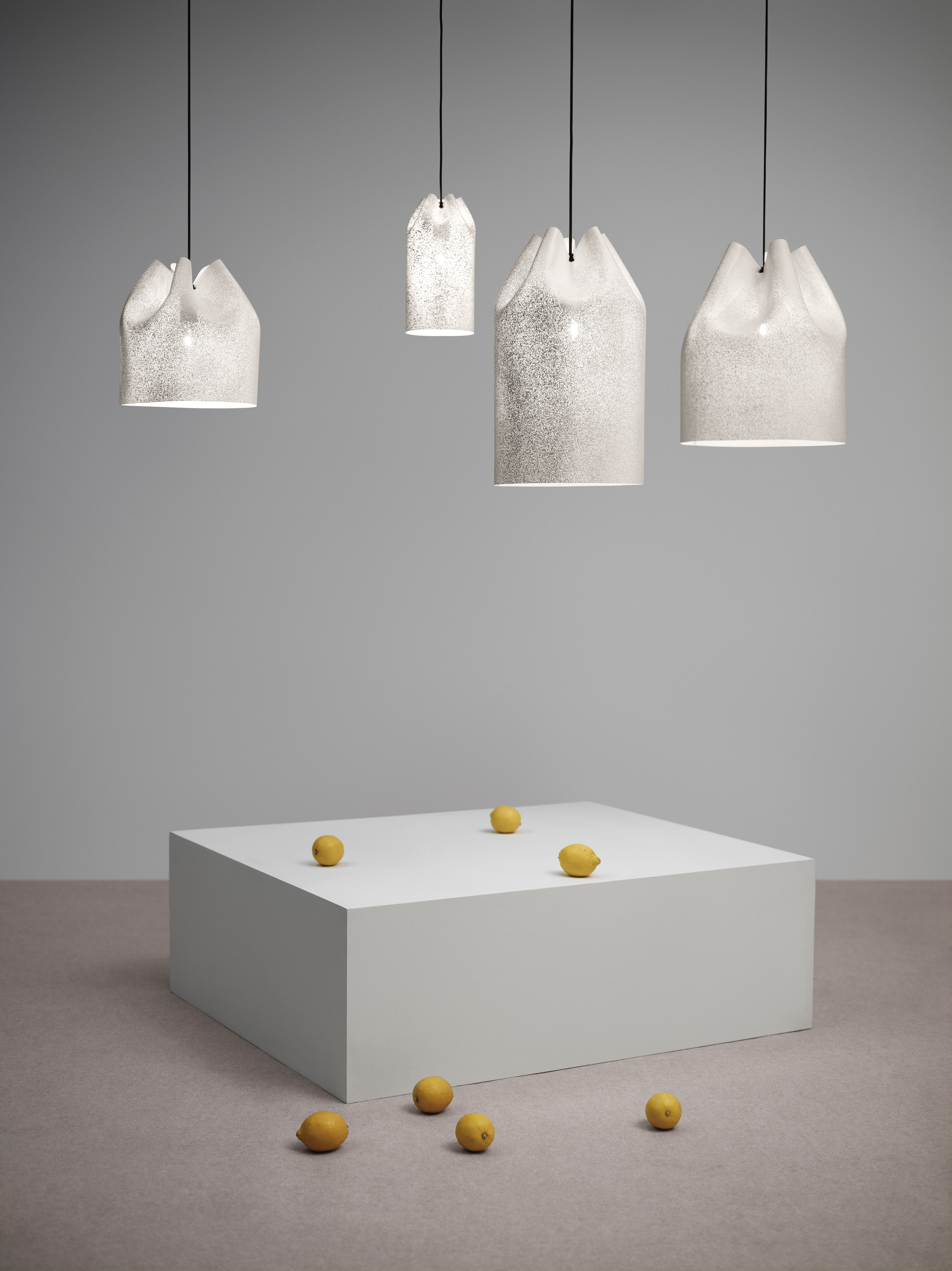 Светильник Agasallo Compositions предлагается в нескольких цветовых решениях: белом, бежевом, сером, серо-коричневом. Также возможен выбор индивидуального цвета. Длина подвеса составляет 200 сантиметров, что обеспечивает гибкость в планировании освещения и позволяет адаптировать светильник под различные интерьерные решения.