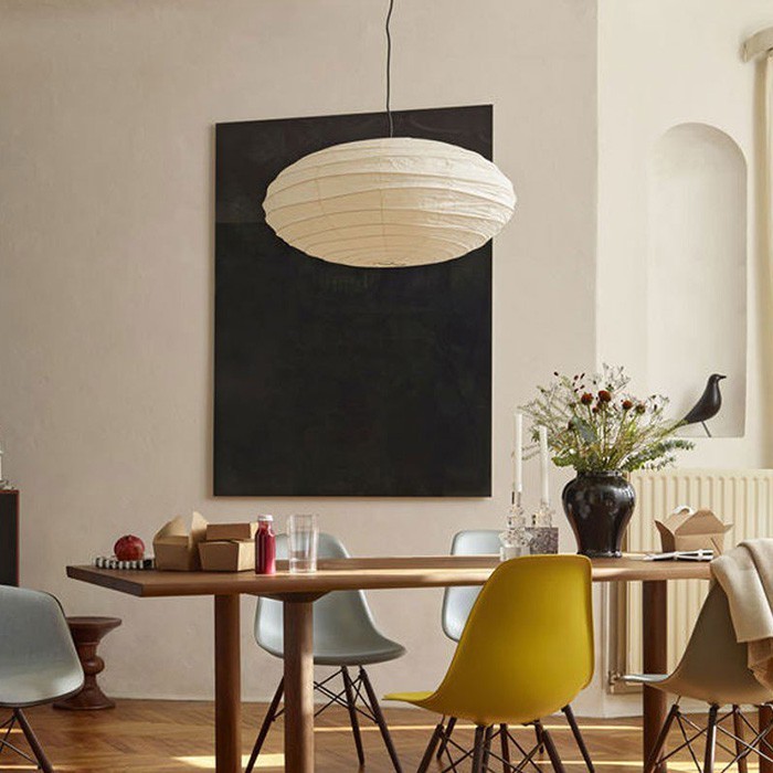 Подвесной светильник Akari выполнен в современном стиле. Абажур эллиптической формы изготовлен из промасленной бумаги шоджи, основание — из металла. В коллекцию также входят подвесные светильники нескольких форм, торшеры и настольные лампы. Более подробную информацию можно уточнить у менеджера.