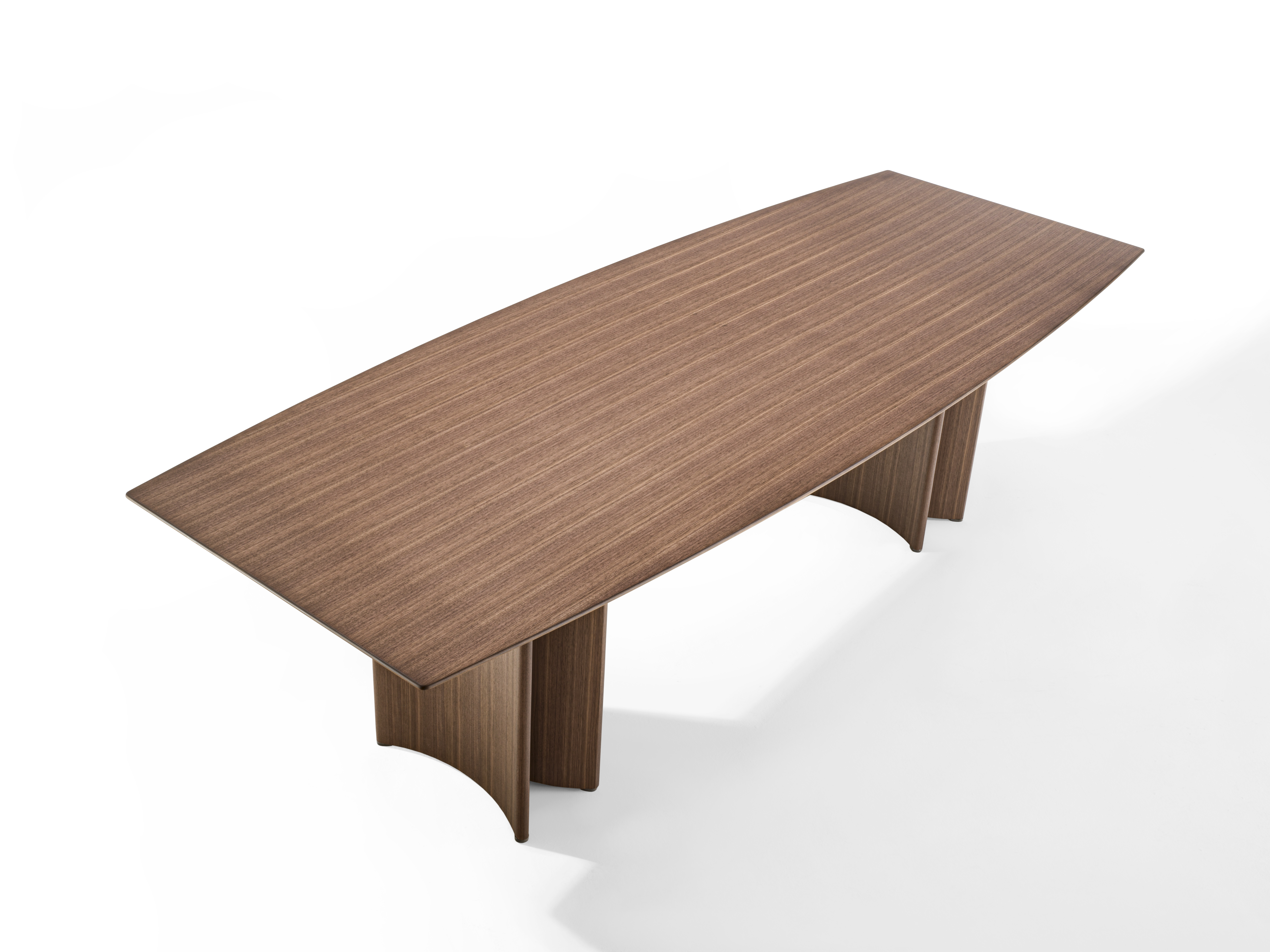 Модель L также отличается элегантным дизайном с основанием в форме полумесяца и ореховым каналом. Однако столешница выполненная из массива дерева толщиной 35 мм, делает её более долговечной и устойчивой к внешним воздействиям. По периметру столешницы предусмотрена аккуратная фаска, придающая столу завершённый и элегантный вид. Металлические наконечники на ножках добавляют столу современный акцент и подчёркивают его стильный и утончённый характер.