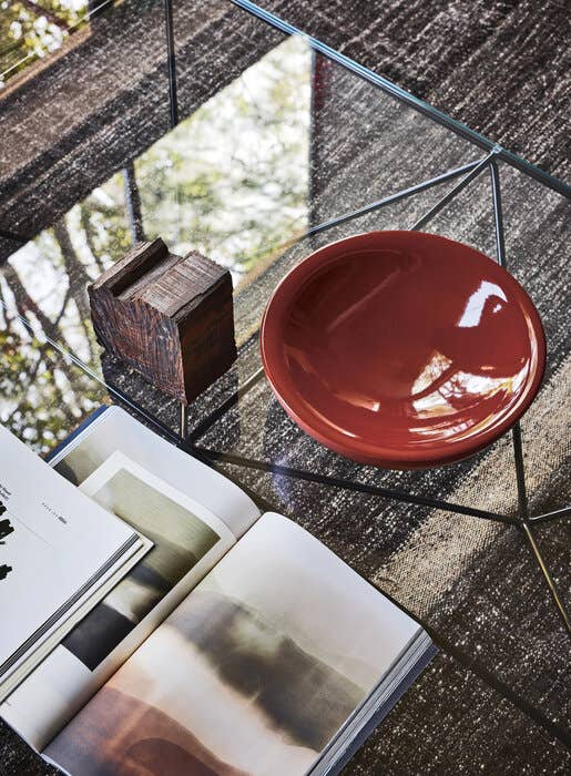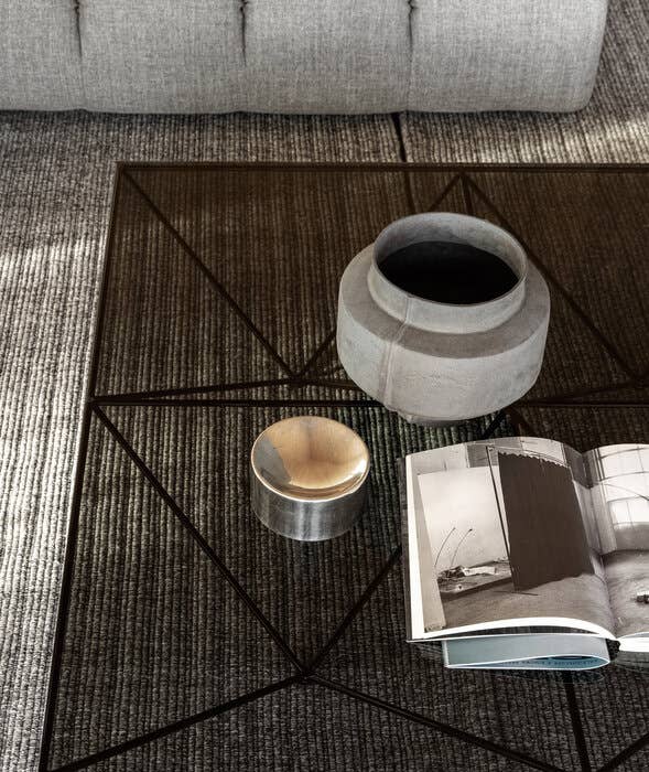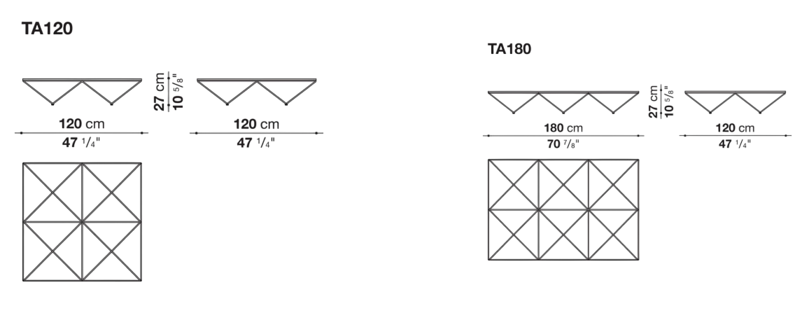 Alanda выделяется своей необычной и запоминающейся формой. Его сетчатая структура, которая одновременно выполняет роль пьедестала и опоры, напоминает сложную геодезическую конструкцию или группу перевёрнутых пирамид. Эта форма придаёт столику не только уникальный внешний вид, но и особую динамику. Сетчатая структура создаёт впечатление лёгкости и воздушности, несмотря на свою массивность.