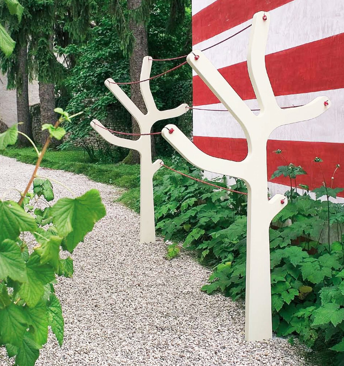 Вешалка для одежды Alberto выполнена из полиэтилена. Доступно три варианта цвета: коричневый, белый, зеленый. Можно использовать один элемент вешалки, тогда нужно дополнительно покупать специальную напольную базу, также можно использовать два элемента, в этом случае одежда вешается на трос, натянутый между элементами, трос не входит в комплект и приобретается самостоятельно. Вешалку можно использовать на улице, благодаря использованию специальных влагостойких материалов. Детали о данной модели уточняйте у менеджеров или в PDF инструкции.