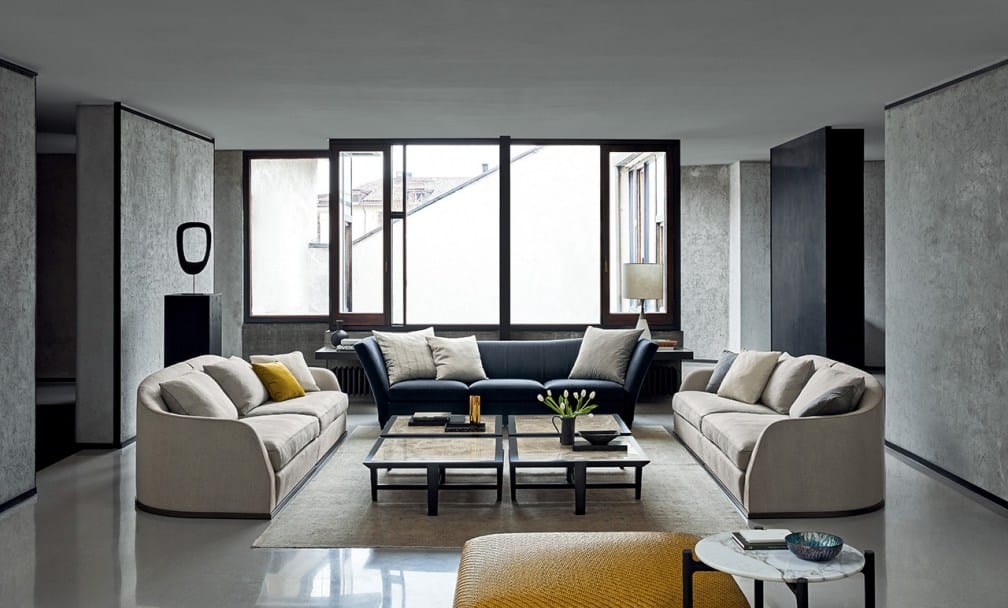 Alfred доступен в двух- и трехместном вариантах, что делает его универсальным для разных пространств. Веерный угловой элемент добавляет модели функциональности, позволяя создавать разнообразные композиции и расставлять мебель по своему вкусу.