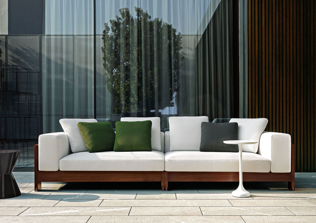 Каркас дивана Alison Outdoor изготавливается из дерева. Сиденье и спинка наполнены пенополиуретаном, который отличается упругостью. В качестве обивки используется ткань. Доступно несколько вариантов цвета обивки. Диван можно использовать на улице, благодаря использованию специальных влагостойких материалов. Более подробную информацию можно уточнить у менеджера.
