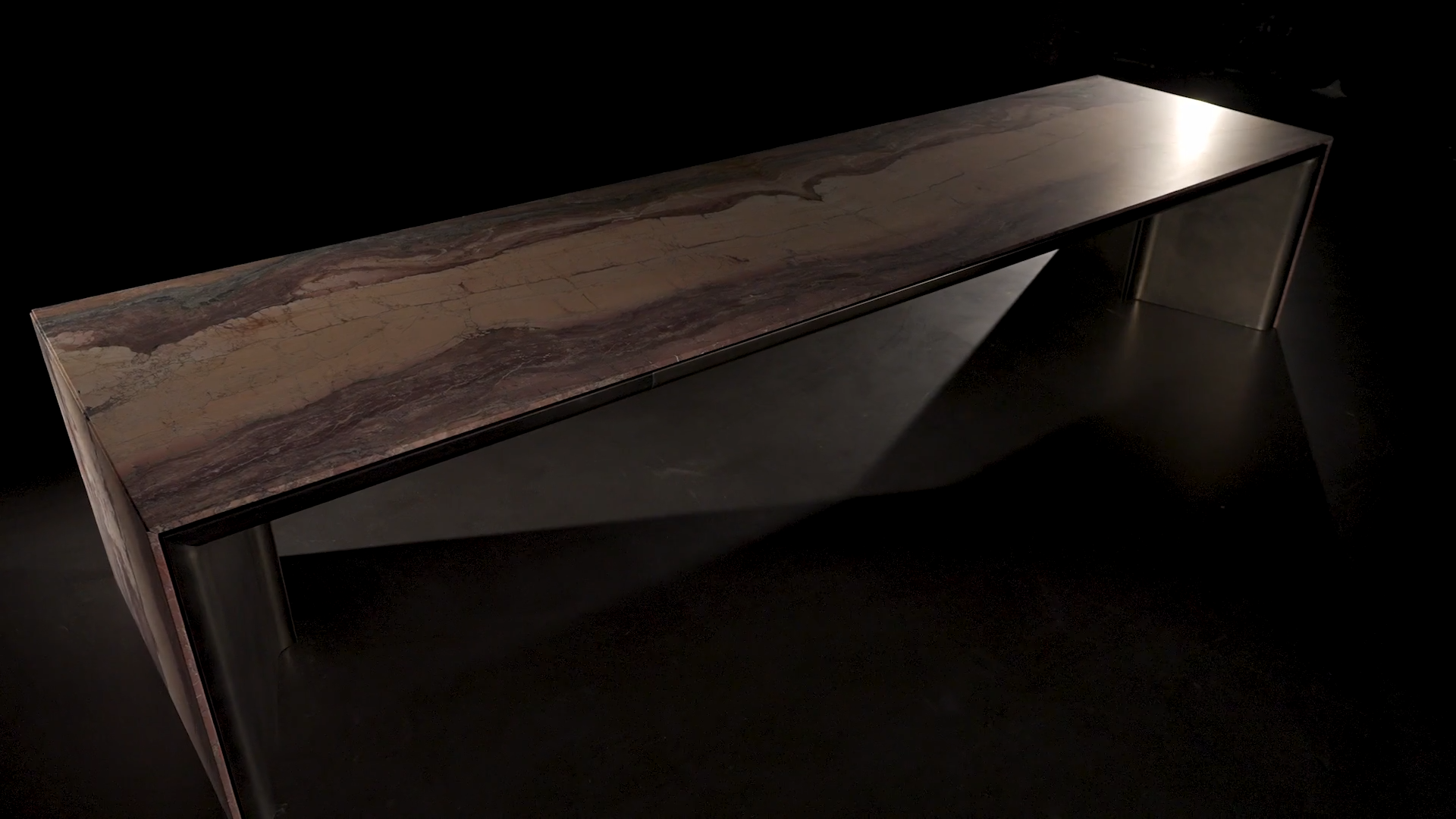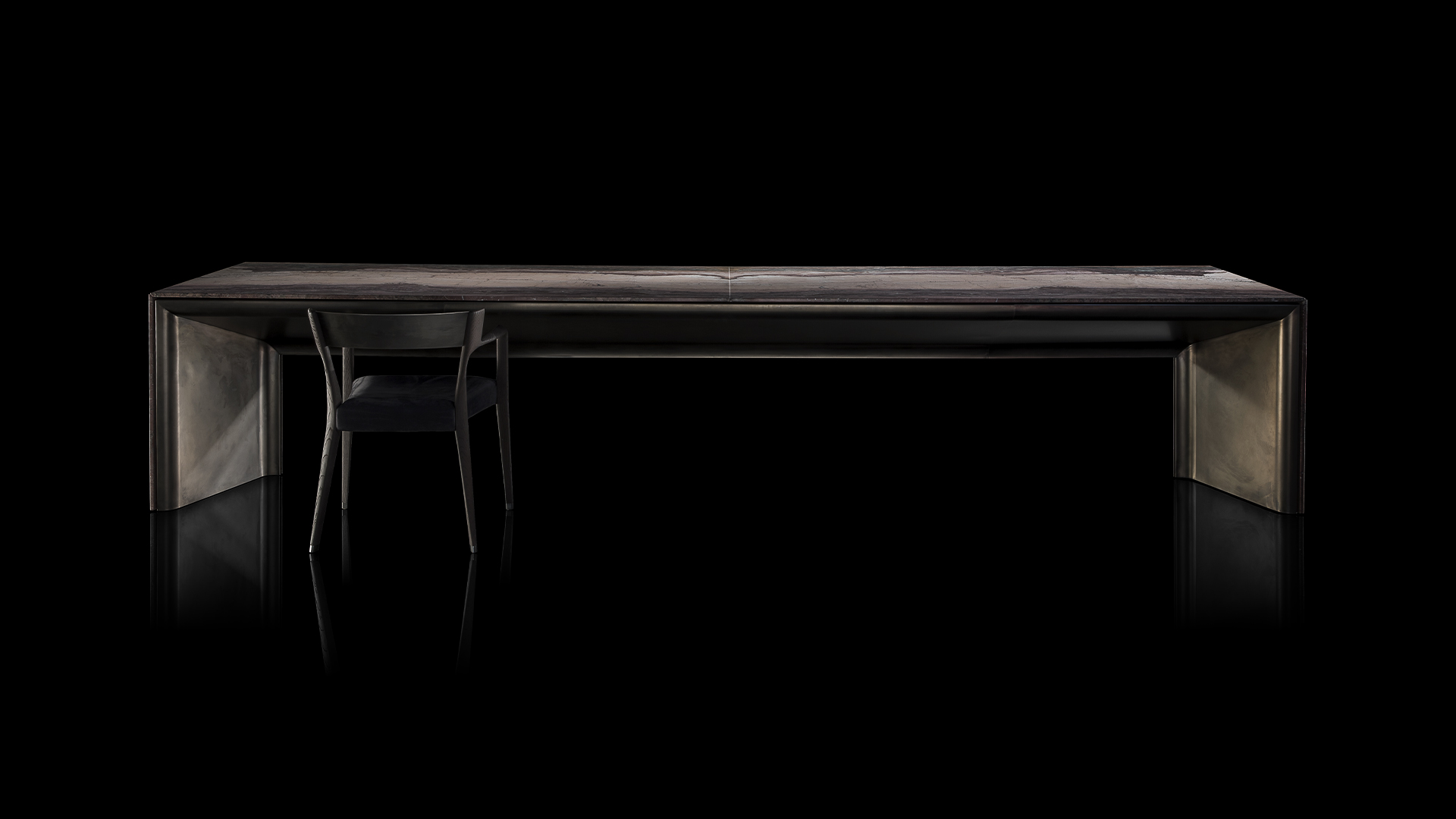 Стол создан на основе уникального сочетания двух материалов — драгоценного металла и камня. Этот симбиоз придаёт изделию изысканность и подчёркивает гармоничный баланс между современностью и традициями.
