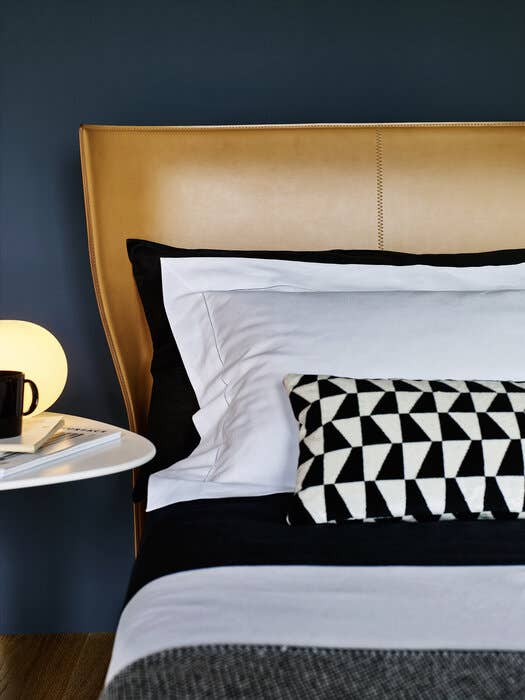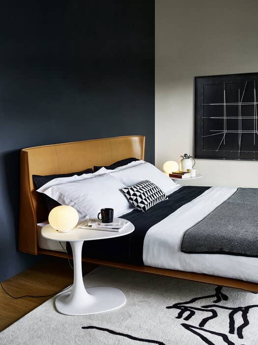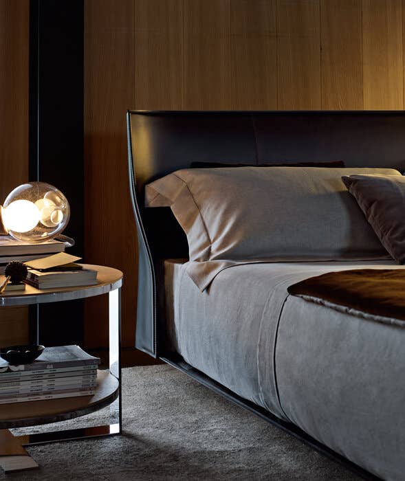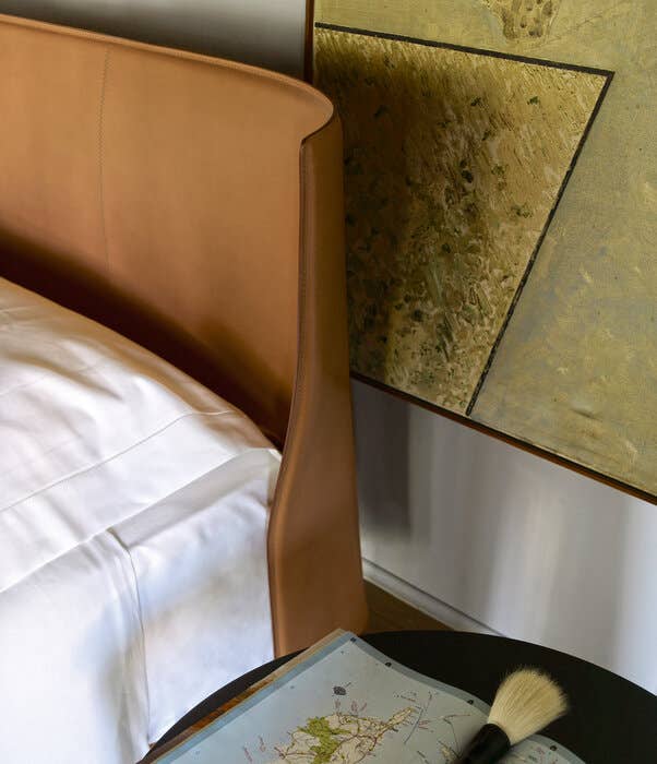 Кровать Alys выделяется своим изголовьем. У основания есть две точки крепления кожаного листа. Это придаёт изголовью естественный наклон. Такой дизайнерский ход придаёт кровати современный вид. Наклонное изголовье делает её заметным элементом интерьера. Оно также добавляет функциональности, создавая дополнительное пространство.