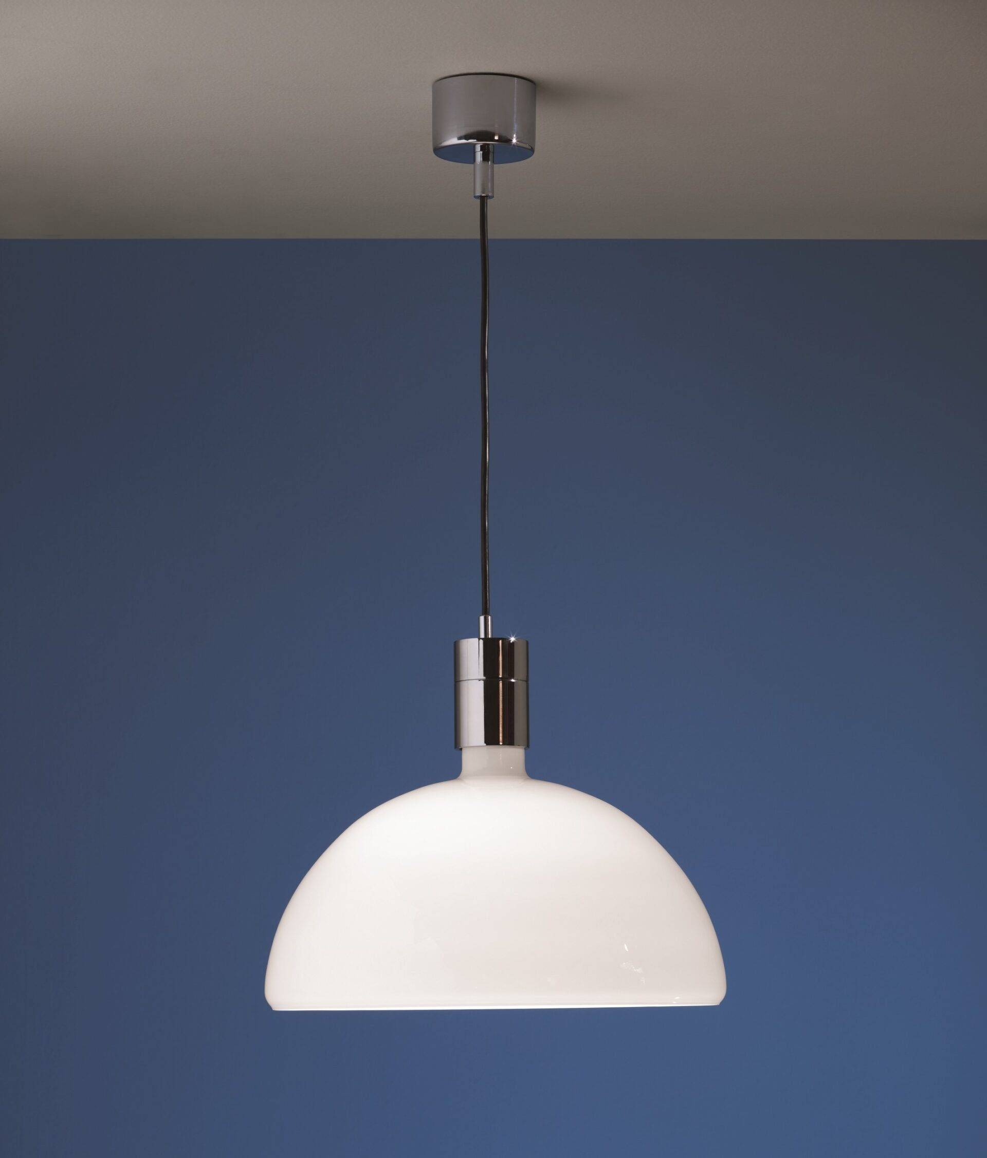 Подвесной светильник AM4C включает в себя хромированные металлические детали. Плафон выполнен из опалового белого стекла. В комплект включен кабельный зажим для регулировки длины кабеля.