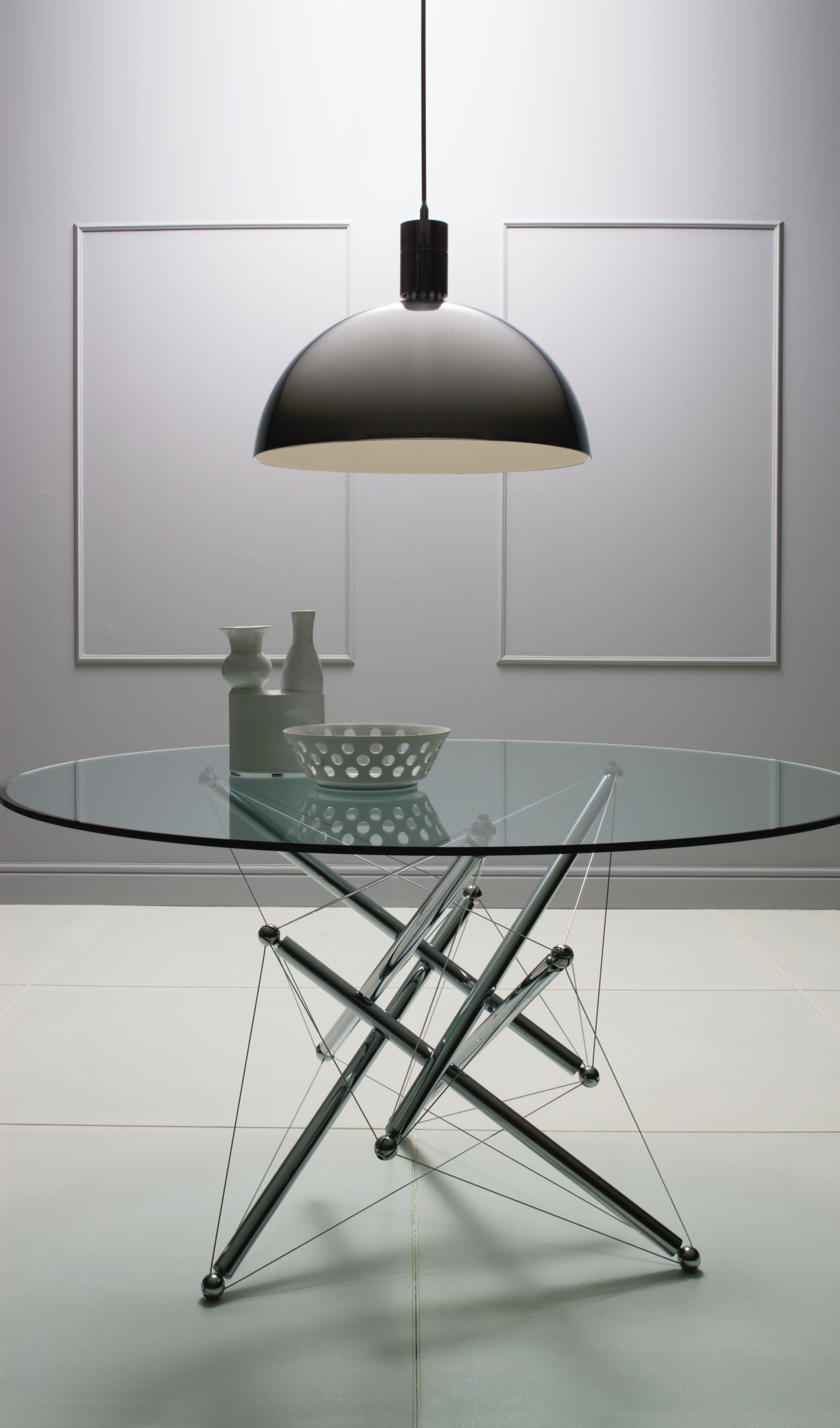 Подвесной светильник AM4Z включает в себя хромированные металлические детали. Плафон выполнен из опалового черного стекла. В комплект включен кабельный зажим для регулировки длины кабеля.
