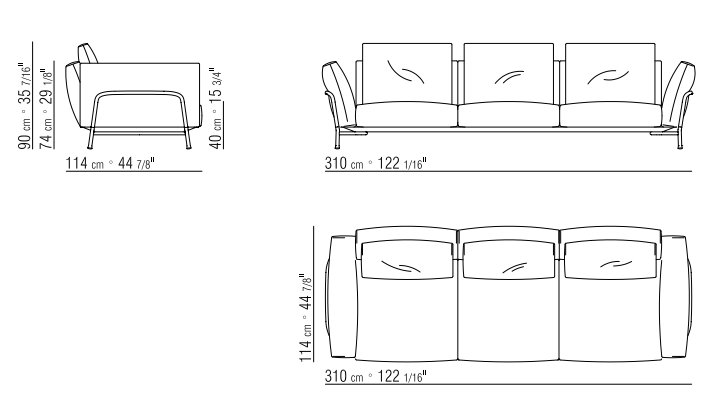 Легкость и грациозность металлического каркаса, доступного в нескольких вариантах отделки, гармонично сочетается с массивностью подушек, покоящихся на кожаном основании. Элегантный металлический подлокотник, обтянутый высококачественной кожей, придает дивану утонченность и завершенность образа. Тонкие ножки с изысканным рисунком подчеркивают легкость конструкции.