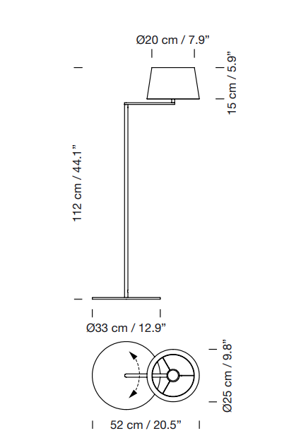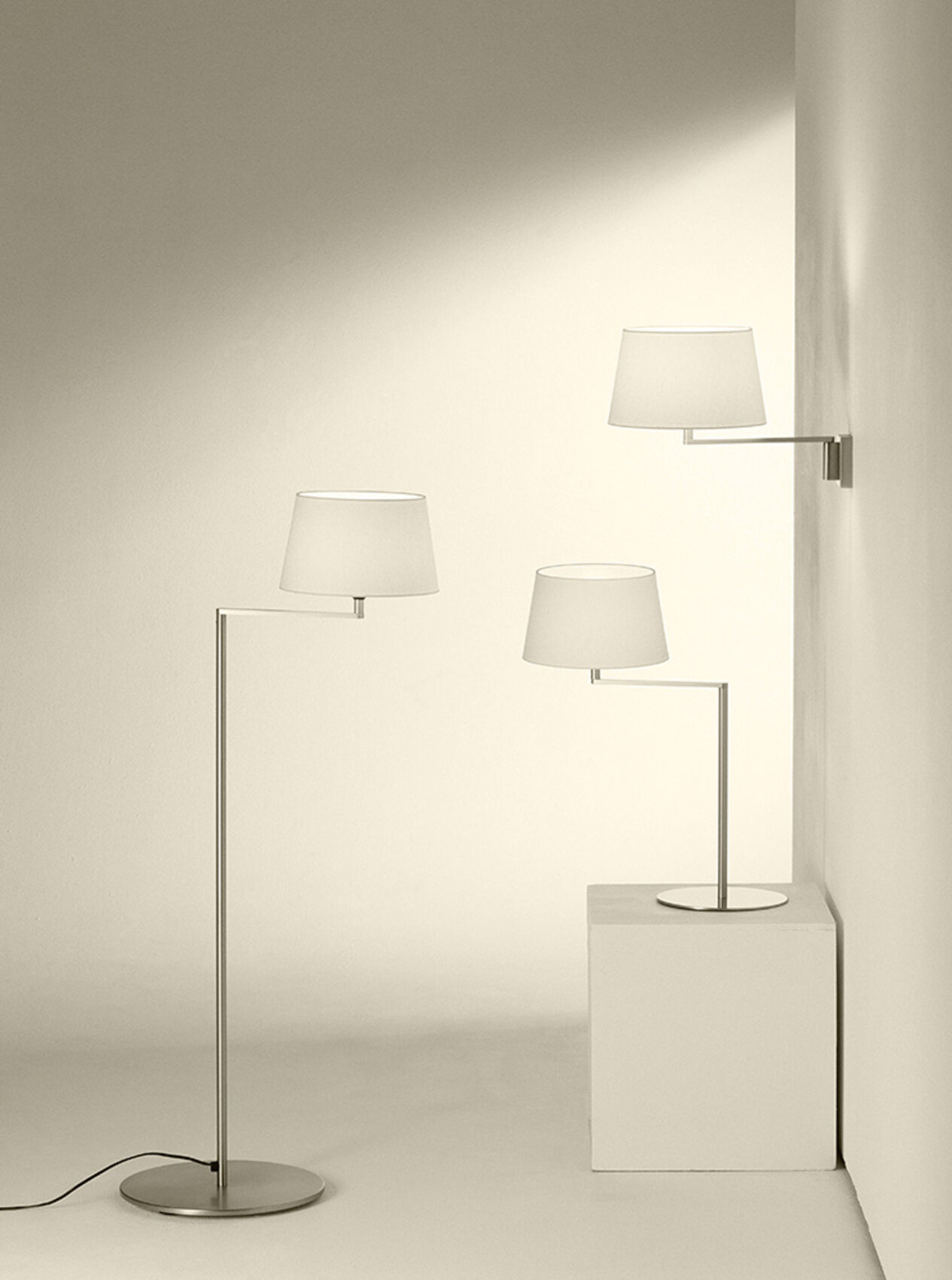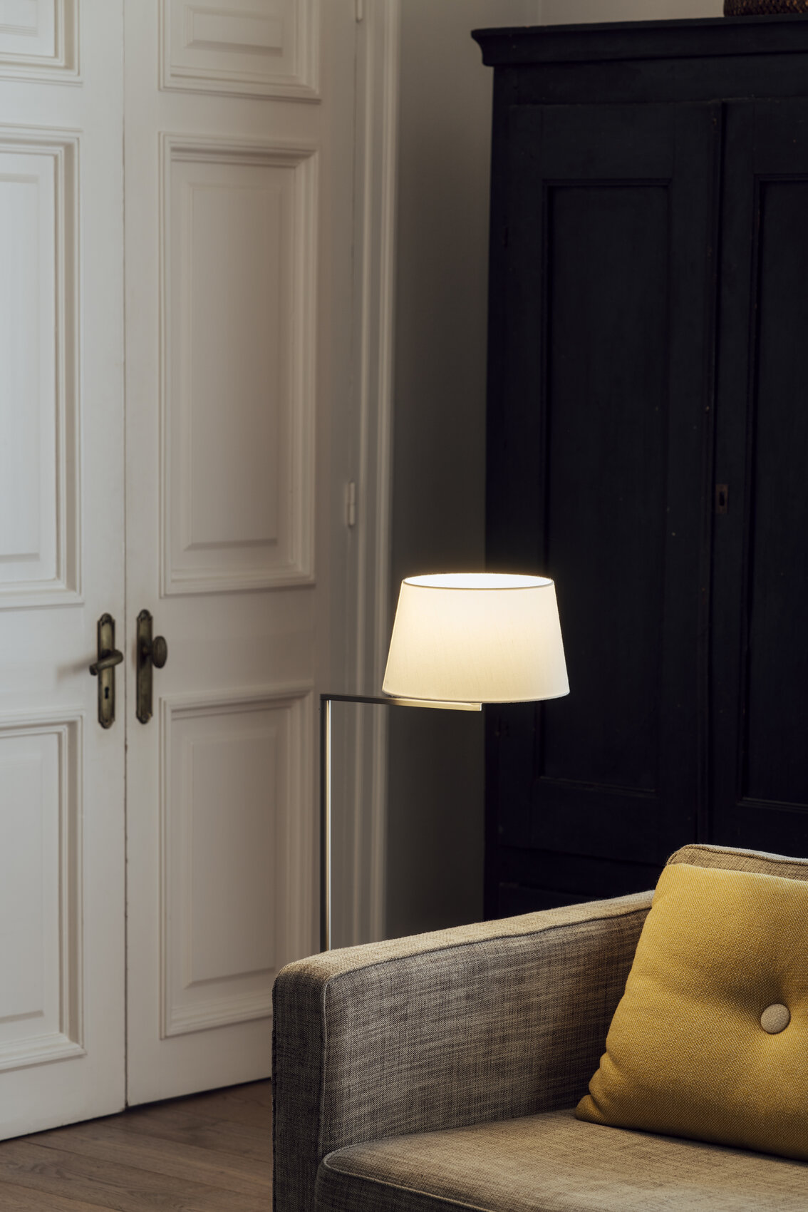 Торшер Americana floor — стильный и удобный осветительный прибор. Его основная часть — шарнирный кронштейн с покрытием из сатинированного никеля. Материал выглядит элегантно: поверхность не бликует, а мягко переливается, добавляя интерьеру благородную сдержанность.