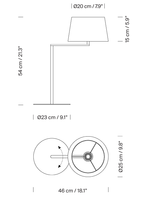 Настольная лампа Americana Table сочетает изящный дизайн и удобную функциональность. Её основа — вращающийся кронштейн из матового никеля. Материал выглядит благородно: мягкий блеск и матовая текстура придают изделию премиальный вид.
