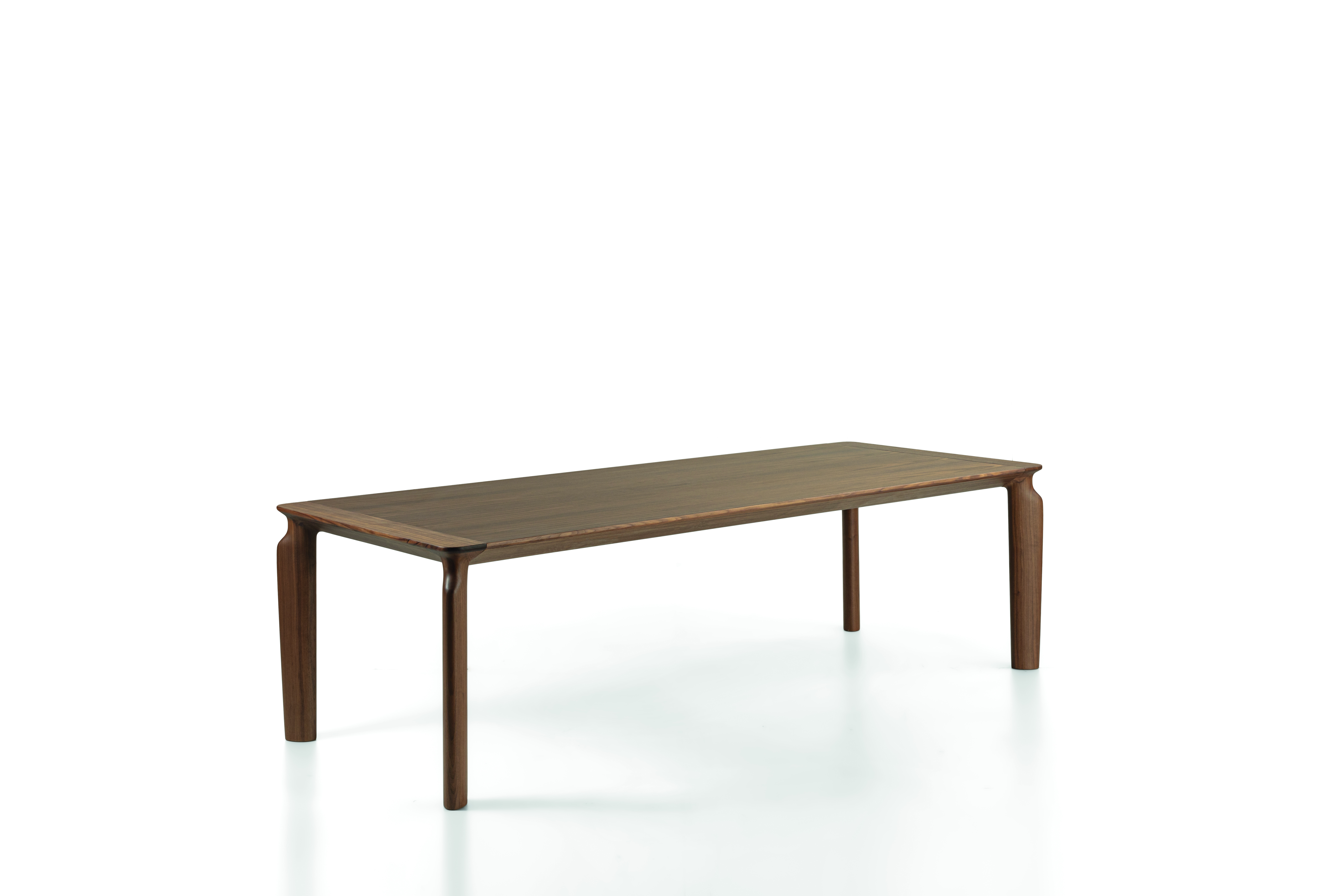 Вторая модель, Amphora L, отличается использованием столешницы из орехового дерева. Этот материал придаёт столу тёплый и естественный оттенок, создавая уютную атмосферу. Ножки стола также изготовлены из массива ореха, что обеспечивает их долговечность и устойчивость. Благодаря этому, стол Amphora L гармонично вписывается в различные интерьеры, добавляя в них природную красоту и тепло.