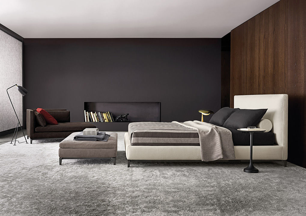 Коллекция Andersen от бренда Minotti включает в себя модульные диваны, кровати, шезлонги и кресла. Кровать Andersen имеет высокое изголовье, которое наполнено полиуретаном. Ножки сделаны из прочного металла и покрыты лаком. Основание кровати изготовлено из качественной древесины. Обивка изголовья и основания выполняется в различной цветовой гамме и может быть из ткани или кожи. Есть возможность заказать кровать со стеганым изголовьем (Andersen Quilt). Кровать доступна в нескольких размерах. Высота основания регулируется под матрас. Более подробную информацию можно уточнить у менеджера или в PDF.
