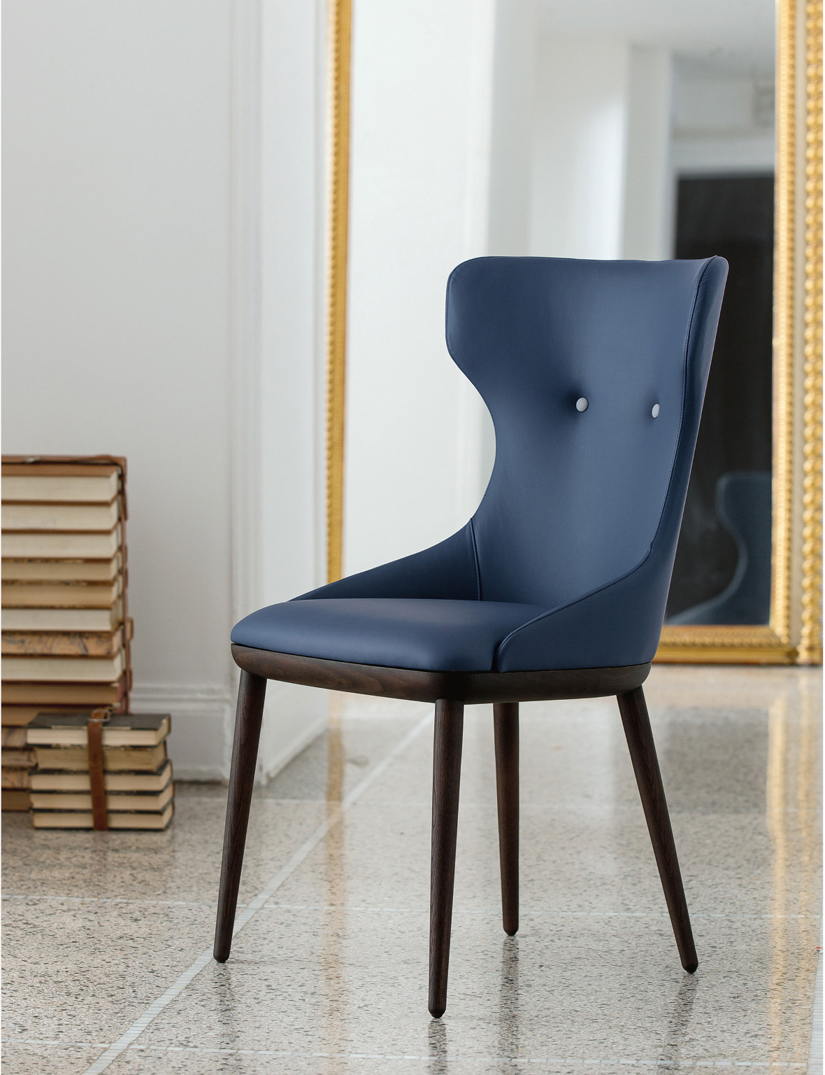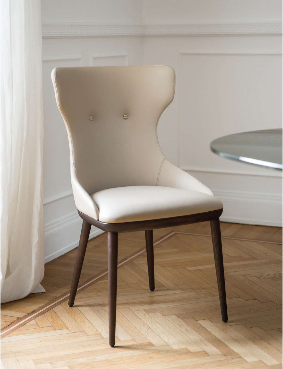 Кресло представлено в двух вариантах конфигурации: с подлокотниками и без, что позволяет адаптировать его для различных помещений и стилей. Каркас, изготовленный из массива ореха или ясеня, отличается высокой прочностью и долговечностью, гарантируя, что кресло прослужит много лет.