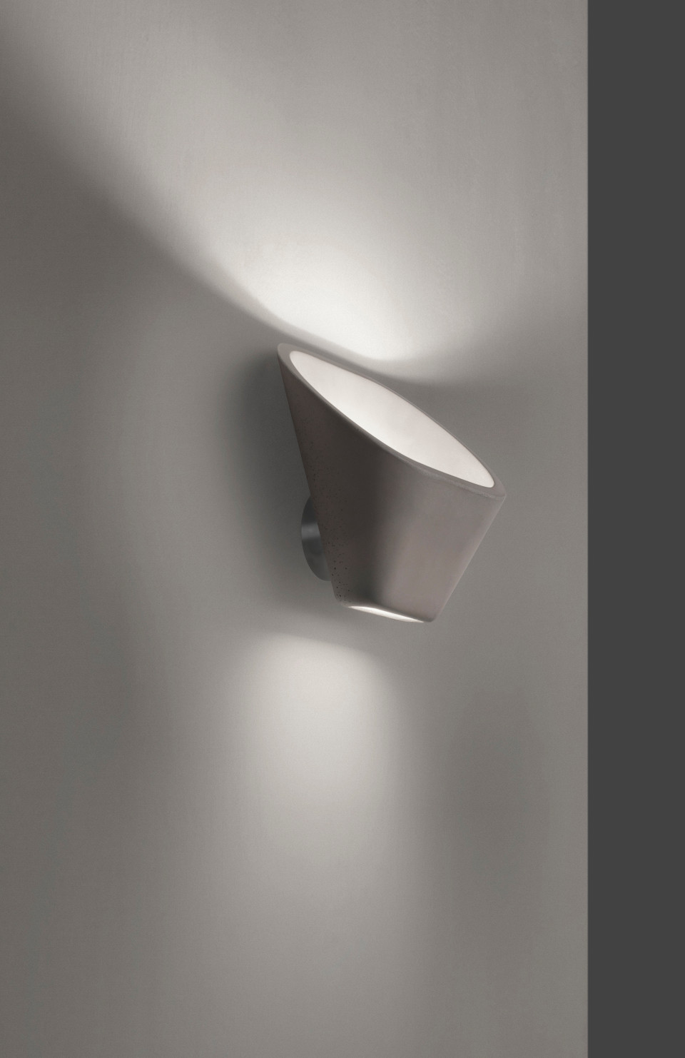 Настенный светильник Aplomb представляет собой уникальное сочетание индустриального стиля и ручной работы. Его характерная форма и текстура достигаются за счет использования инновационного материала — специального жидкого цемента, который заливается вручную в форму. Этот процесс придает каждому светильнику неповторимую, слегка шероховатую поверхность.
