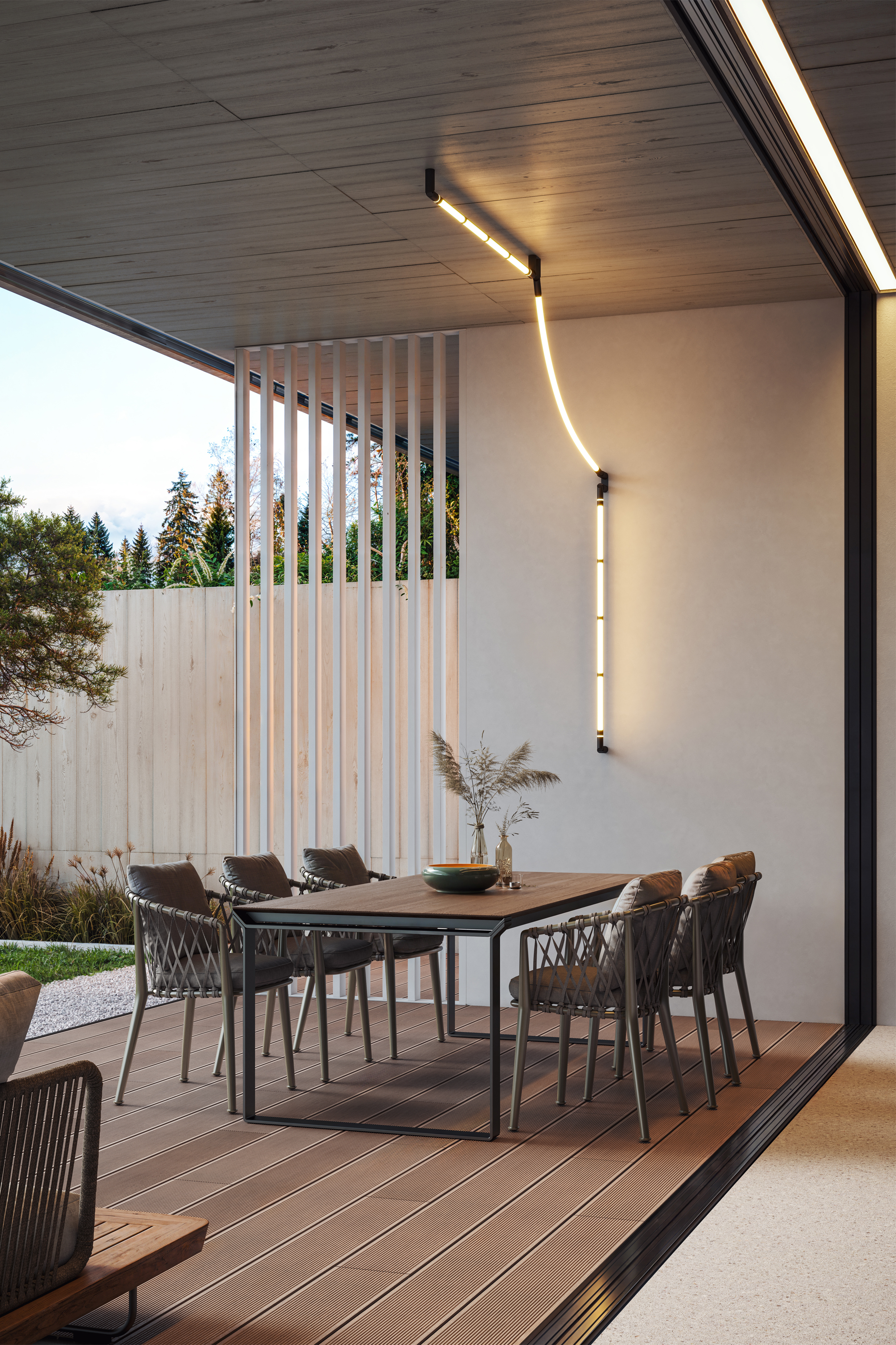 Благодаря этой возможности светильник создаёт два типа освещения — прямое и непрямое. Прямое освещение концентрирует световой поток на конкретной зоне, обеспечивая яркую и целенаправленную подсветку. Непрямое освещение, напротив, рассеивает свет, отражая его от поверхностей, что формирует мягкую, равномерную световую атмосферу и визуально расширяет пространство. Такое сочетание делает Arco Wall универсальным решением для различных интерьерных задач.