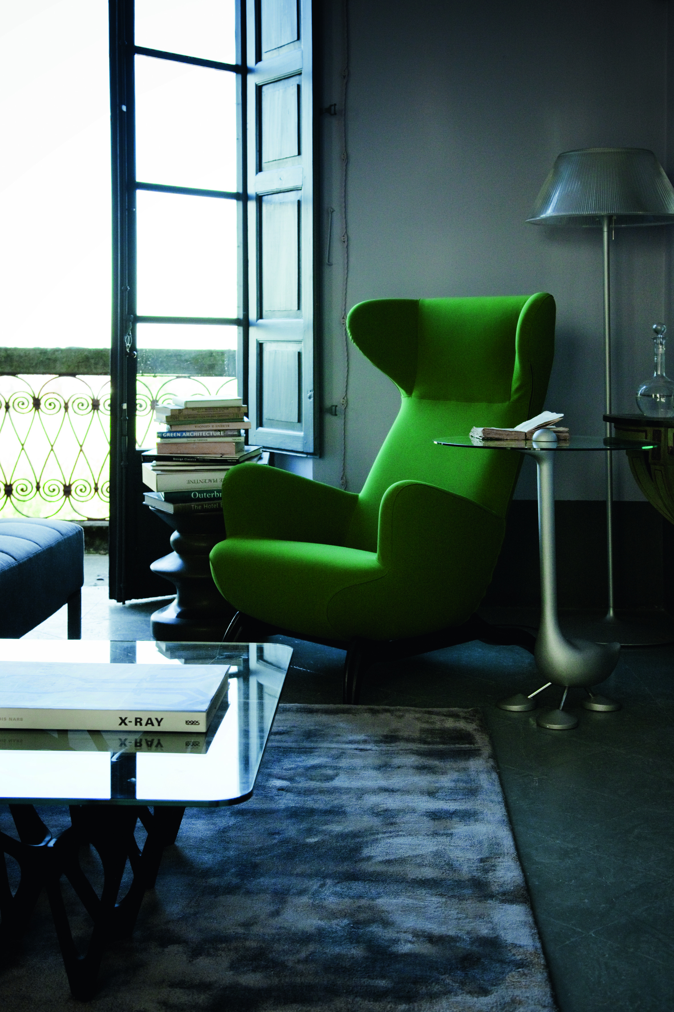 Дизайнерское кресло Ardea фабрики Zanotta. Деревянные ножки выполнены из массива дуба изящной волнистой формы, стальной каркас переплетают упругие ремни, кресло наполнено полиуретаном с волокнами полиэстера. Спинка специально спроектирована немного выгнутой для максимального комфорта. Обивка возможна только из ткани, но ассортимент цветов очень велик. Подробности уточняйте у менеджеров.