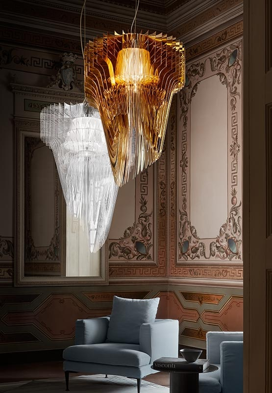 Подвесной светильник Aria Suspension представляет собой воплощение инновационной и выразительной архитектуры, объединяющей в себе дальновидность, текучесть и динамичность. Он не просто освещает пространство, но и создаёт атмосферу, в которой гармонично сосуществуют обитатели и их окружение.