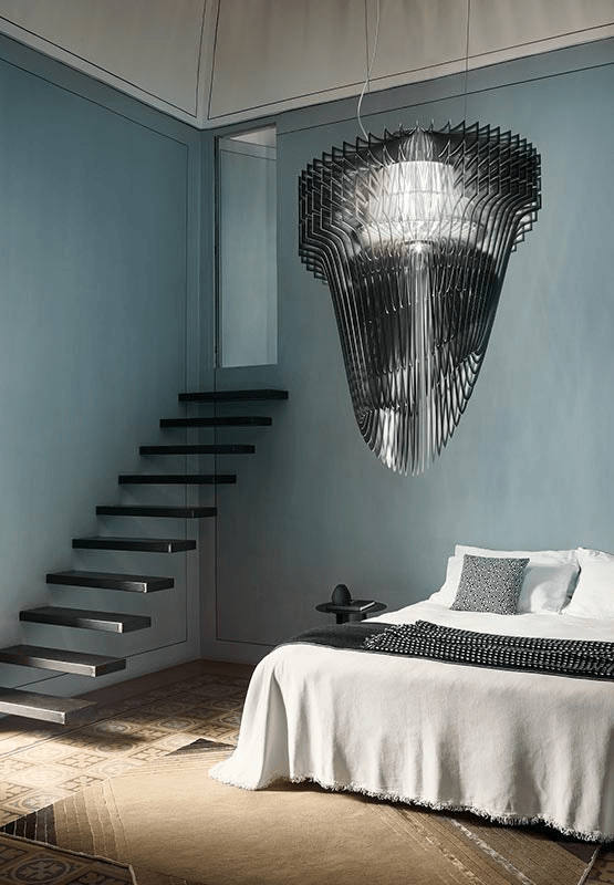 Светильник вдохновлён творчеством известного архитектора и привносит в интерьеры жилых и общественных помещений революционную и знаковую концепцию. Его уникальный дизайн символизирует движение и развитие, что придаёт пространству особую энергетику и динамику.