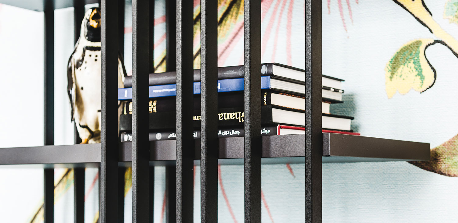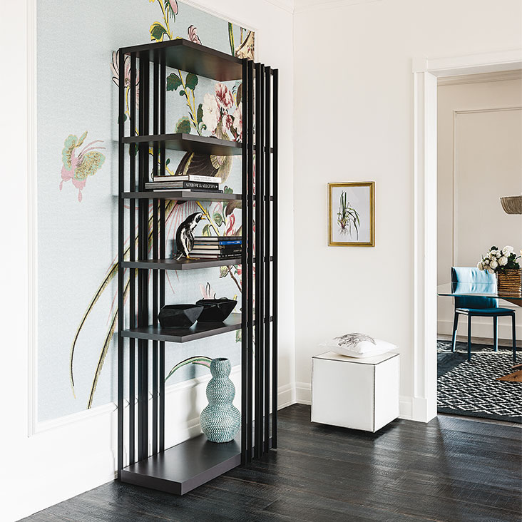 Arsenal — модульный стеллаж с рамкой в белом, черном или графитовом тиснении. Полки модели выполнены из дерева (грецкий орех, дуб). Стеллаж доступен в двух размерах. Инновационное решение для хранения и организации пространства. Стеллаж отличается уникальным дизайном, где вертикальные стальные полосы образуют решетчатую структуру, создающую интересную игру скрытия и демонстрации объектов. Более подробную информацию можно уточнить у менеджера.