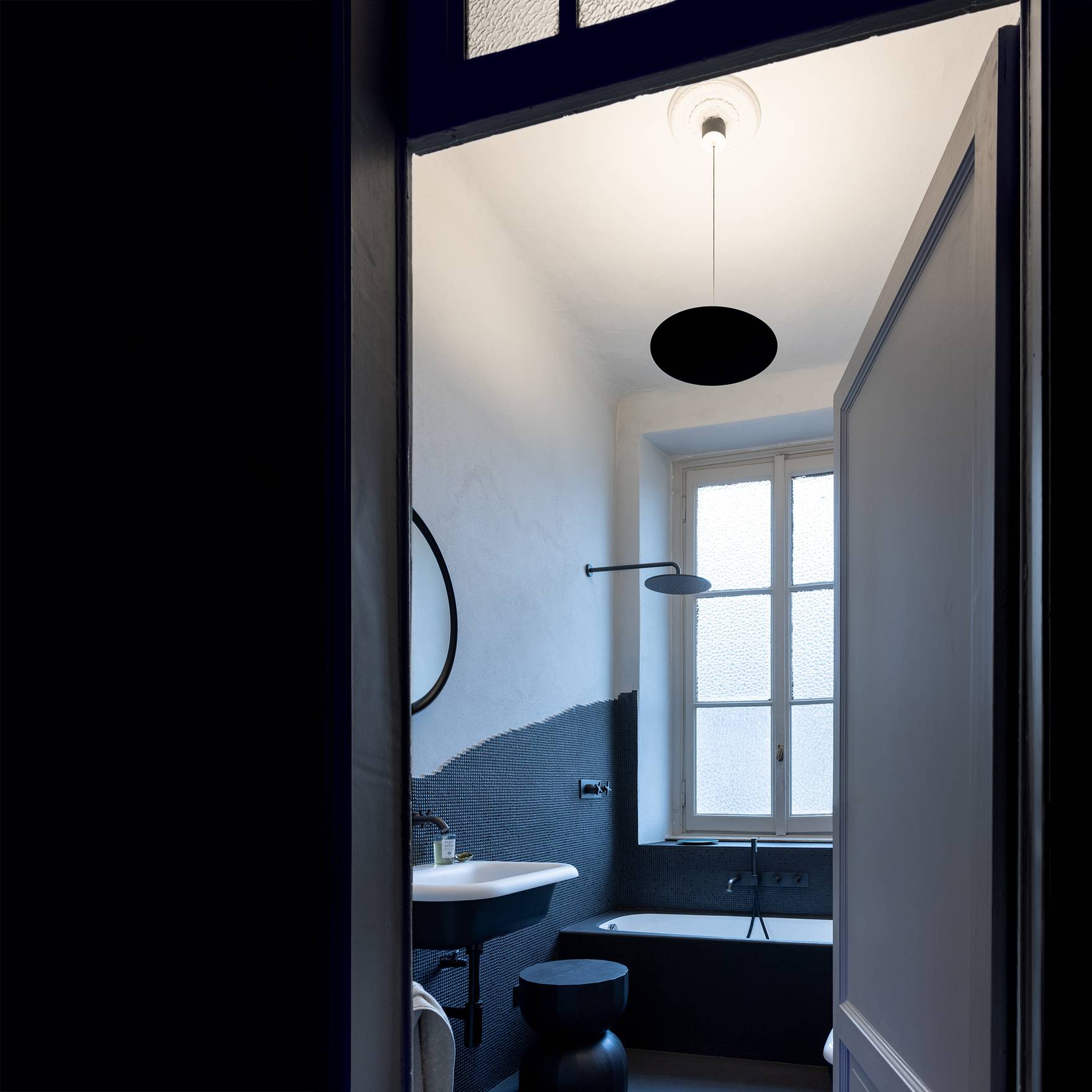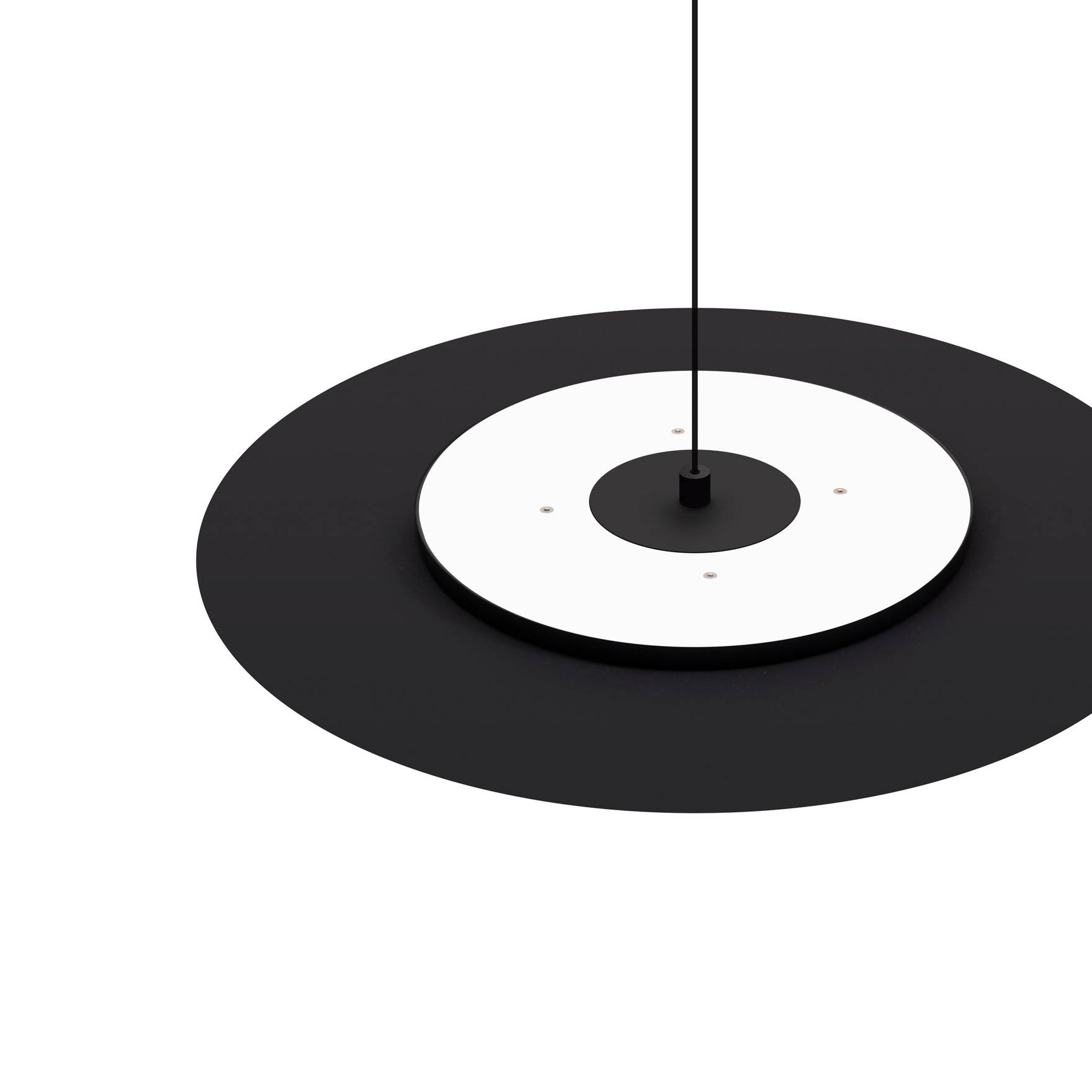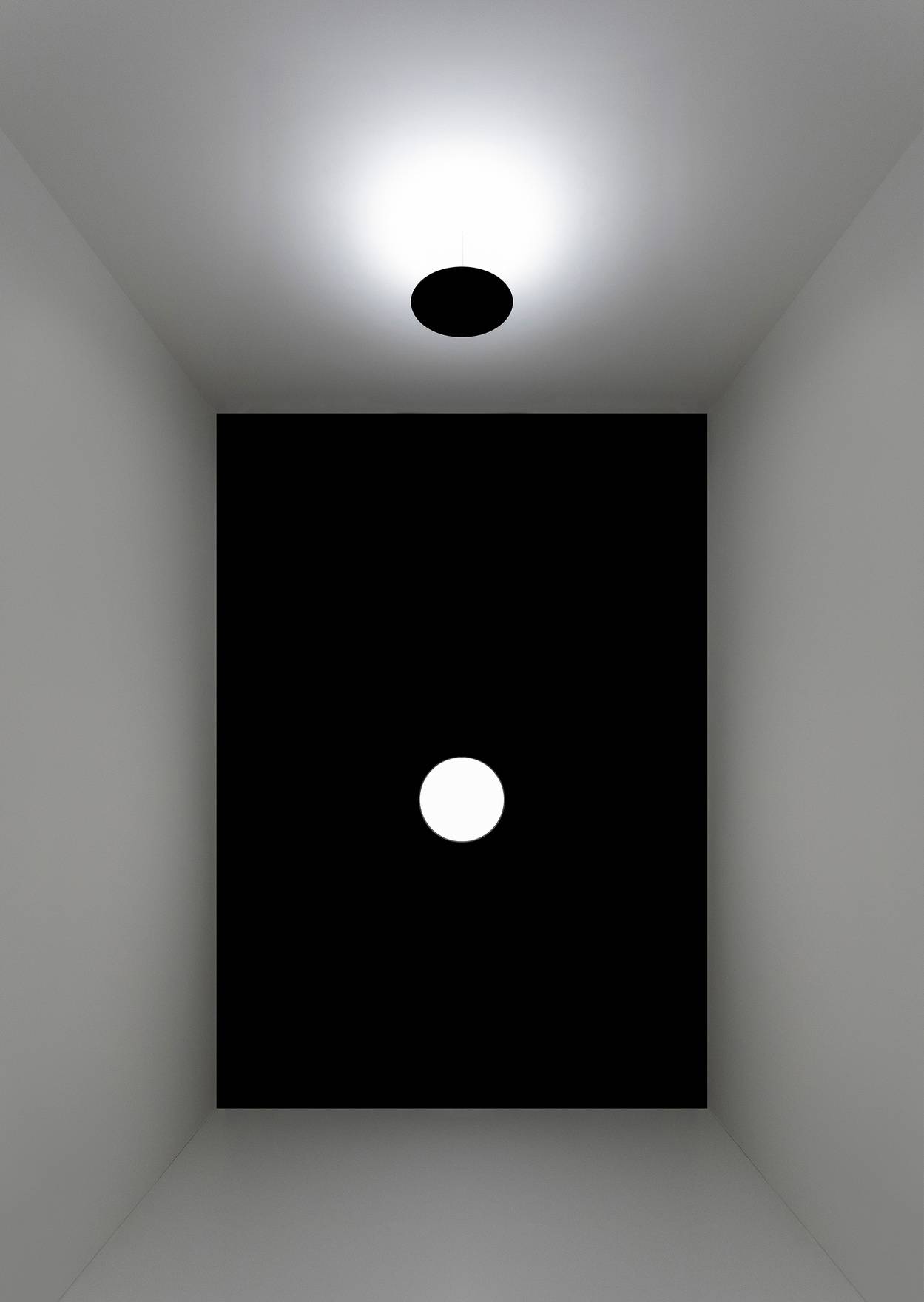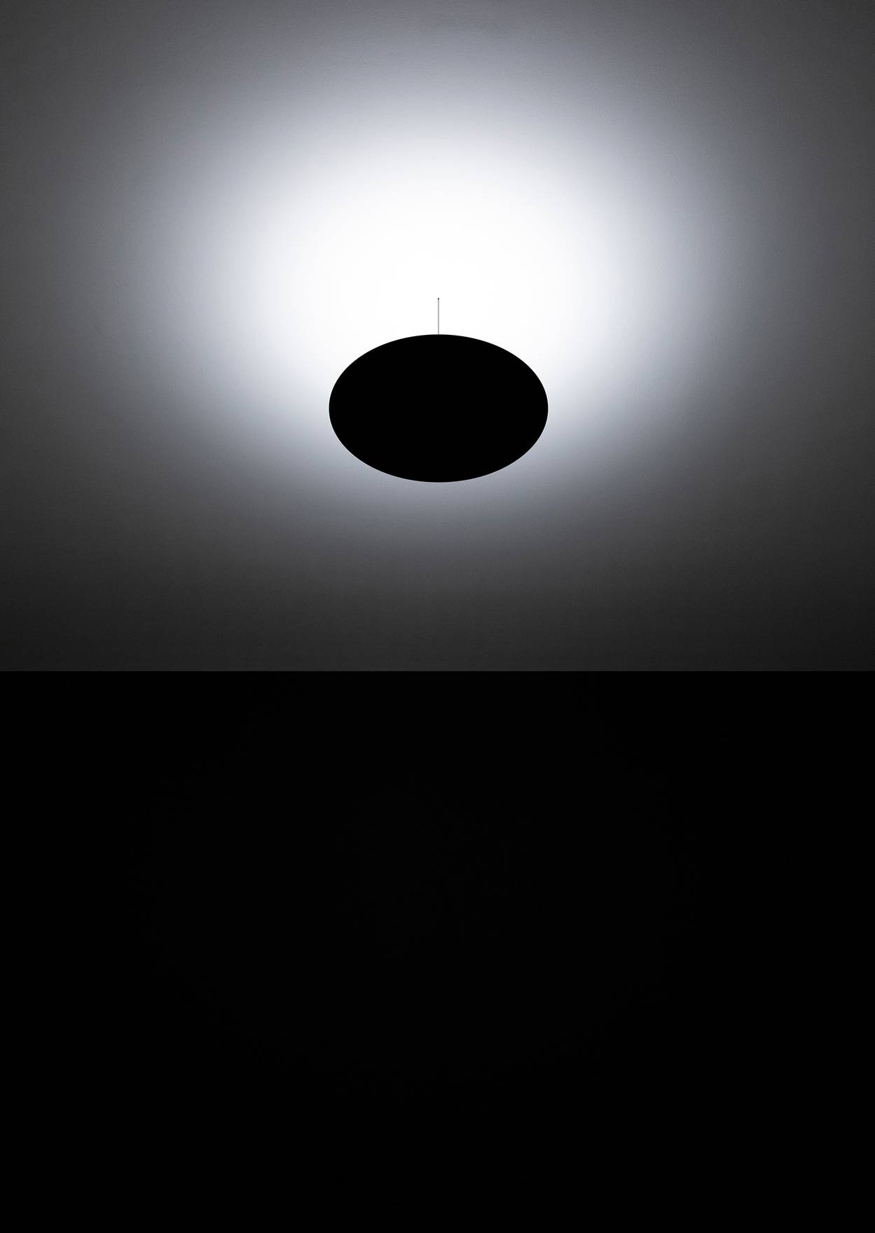 Asintoto — это потолочный светильник, который воплощает собой минимализм и современность. Его лаконичные формы и оригинальная концепция делают его не просто осветительным прибором, а настоящим графическим знаком, органично интегрированным в пространство. Внешний вид светильника напоминает абстрактный чёрный диск, создавая впечатление, что он буквально парит в воздухе. Это символизирует отсутствие света, что придаёт модели особую выразительность и глубину.