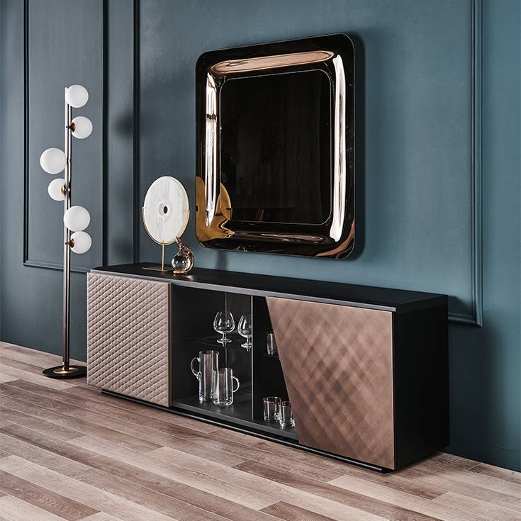 Роскошный комод/ТВ-тумба Aston представляют собой выразительные предметы мебели, придающие гостиной индивидуальность и запоминающийся облик. Особенность дизайна — гармоничное сочетание нескольких материалов и благородных покрытий, создающее сбалансированную, утонченную и высокофункциональную композицию. Модель Aston идеально вписывается в современные интерьеры, подчеркивая их стиль и обеспечивая практичность в использовании.