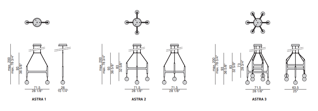 Особенностью люстр из коллекции Astra является возможность настройки количества источников света. Благодаря соединению на нескольких уровнях с двумя или тремя поперечинами можно объединить два, четыре или шесть источников света. Такая адаптивность делает люстру Astra идеальным решением для различных проектов по меблировке. Она гармонично вписывается в различные дизайнерские концепции, от классических до современных, и позволяет создать уютное и функциональное освещение в любом помещении.