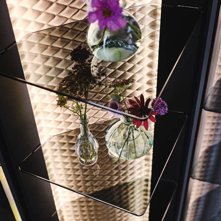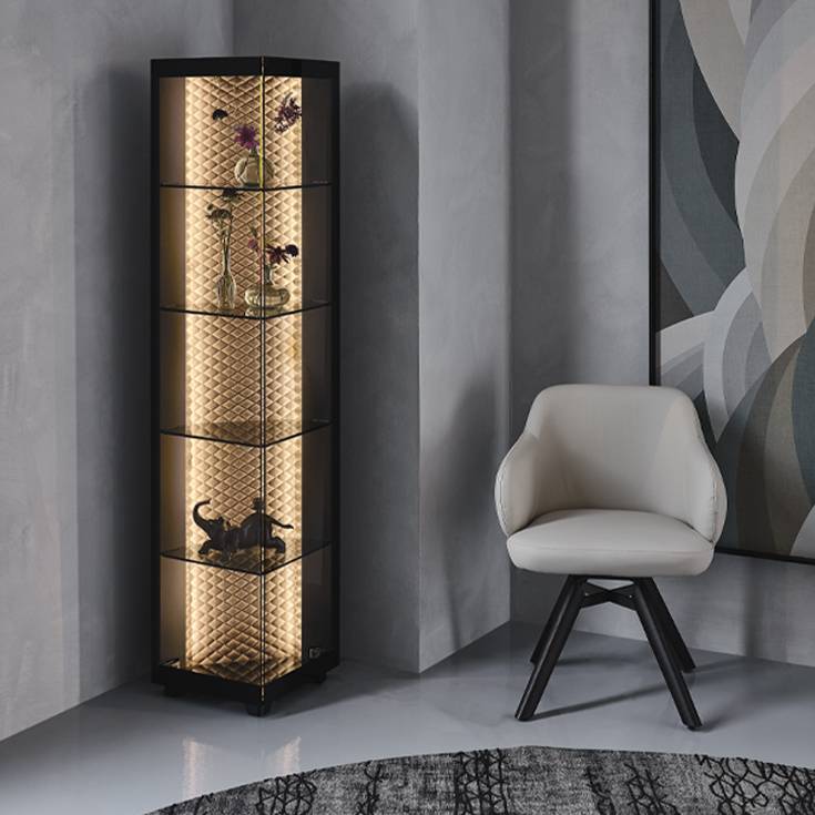 Витрина Atelier — это пример того, как лаконичный предмет преображает пространство, делая его изысканным и завершенным. Благодаря своей уникальной треугольной форме, она идеально создана для оформления угла, эффективно используя каждый сантиметр и придавая ему элегантность. Внутреннее пространство отделано роскошной кожей или экокожей с изысканной стежкой в виде ромбовидного узора. Эта текстурная отделка, перекликающаяся с дизайном стульев коллекции Couture, создает безупречный фон для хранения и демонстрации ваших самых ценных предметов — будь то фарфор, книги, аксессуары или коллекционные изделия.