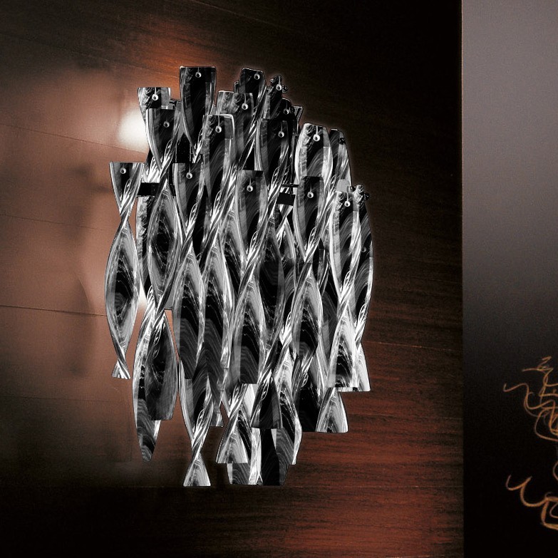 Соблазнительные формы, извилистый образ, который играет на текучести; эстетические, визуальные и тактильные характеристики, которые касаются эмоционального восприятия объекта. Волны света, полосы цвета, хрустальная пьеса: шелковистые волны бурных вод, сверкающие объекты, вдохновленные гидродинамическими формами морских животных. Коллекция Aura является не только инструментом, но и языком, который выражает мечты, желания и ощущения. Эти светильники - воплощенный свет, что привлекает вас как на когнитивном, так и на эмоциональном уровне; наблюдатель инстинктивно протягивает руку, чтобы коснуться кристаллов, выйти за рамки визуального восприятия. Извилистые и отражающие поверхности создают спонтанные эффекты, где цвет сочетается с воплощением, создавая светильник, который определяет и интерпретирует сам свет: утонченный в оттенках белого, страстный в красном, таинственный в черном. В коллекции Aura стекло производится полностью вручную, используя традиционные методы итальянских мастеров.