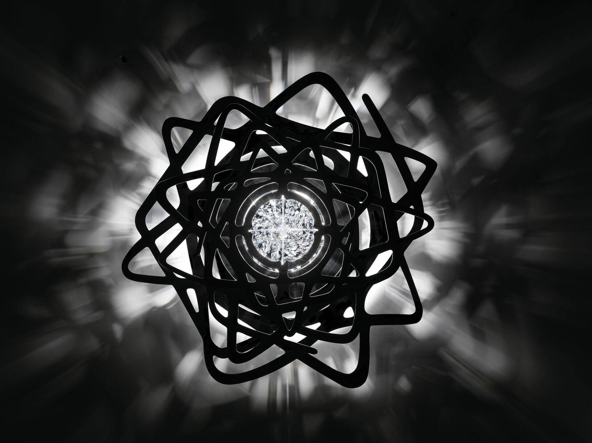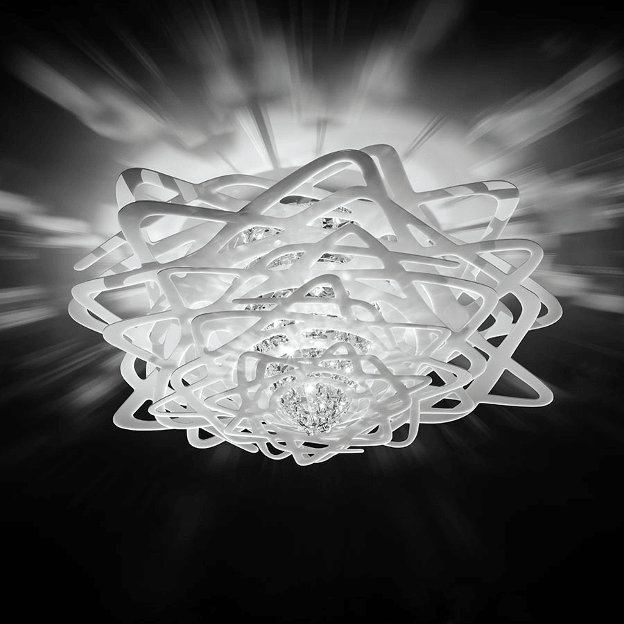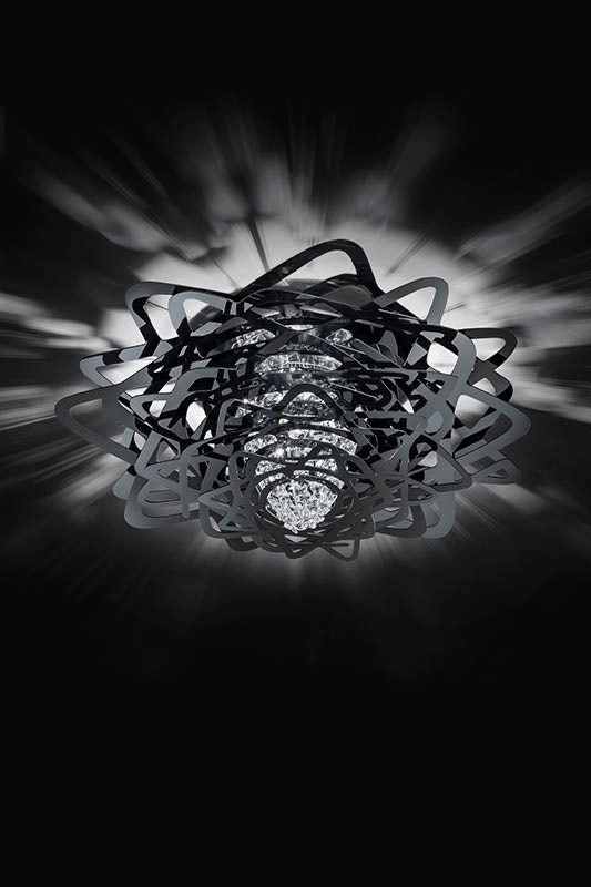 Центром композиции являются кристаллы, которые, играя на свету, переливаются и пульсируют, словно живые. Их мерцание завораживает, превращая каждый момент в маленькое чудо. «Aurora Ceiling» не просто освещает комнату, он наполняет её аурой роскоши и изящества, делая интерьер более выразительным и запоминающимся.