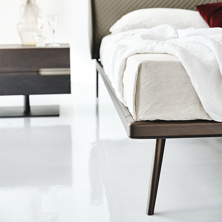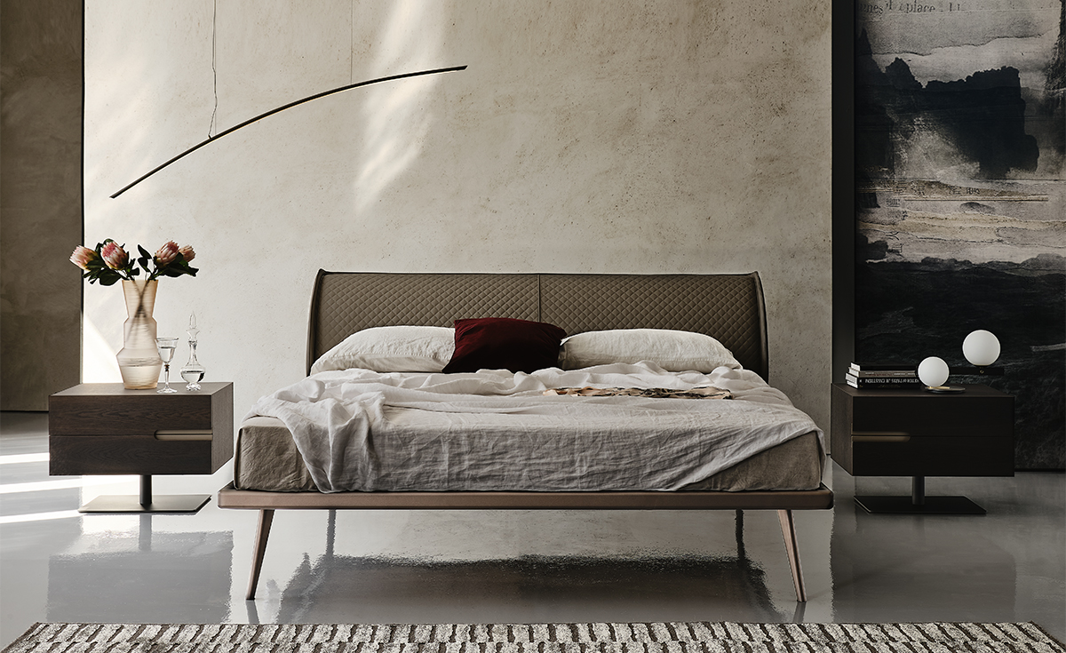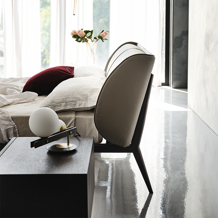 Кровать Ayrton представляет собой гармоничное сочетание скульптурной эстетики и современного комфорта. Модель отличается объемным мягким изголовьем с изысканной ромбовидной стежкой, где боковые панели плавно выступают вперед, создавая эффект защитного объятия. Контраст между уютной обивкой и строгими металлическими ножками подчеркивает глубину дизайнерского замысла. Кровать доступна в широком диапазоне размеров: ширина от 184см до 217 см, длина от 241 см до 244 см, что позволяет идеально адаптировать ее под параметры спальни.