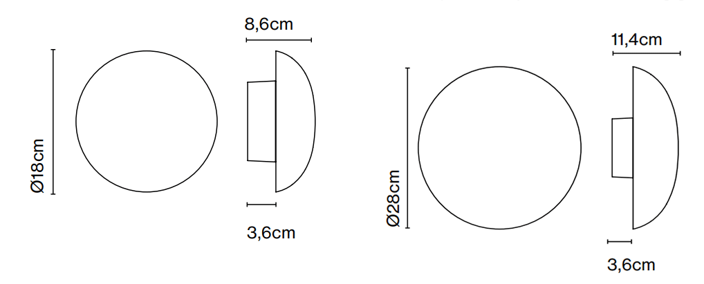 Babila Wall доступен в двух размерах: с диаметром 18 см и 28 см. Это позволяет выбрать оптимальный вариант для любого интерьера. Светильник представлен в двух стильных вариантах отделки: матово-белом и коричневом лакированном алюминии. Эти отделки отличаются сдержанностью и элегантностью. Они создают современный и утончённый образ, который гармонично дополняет любое пространство.