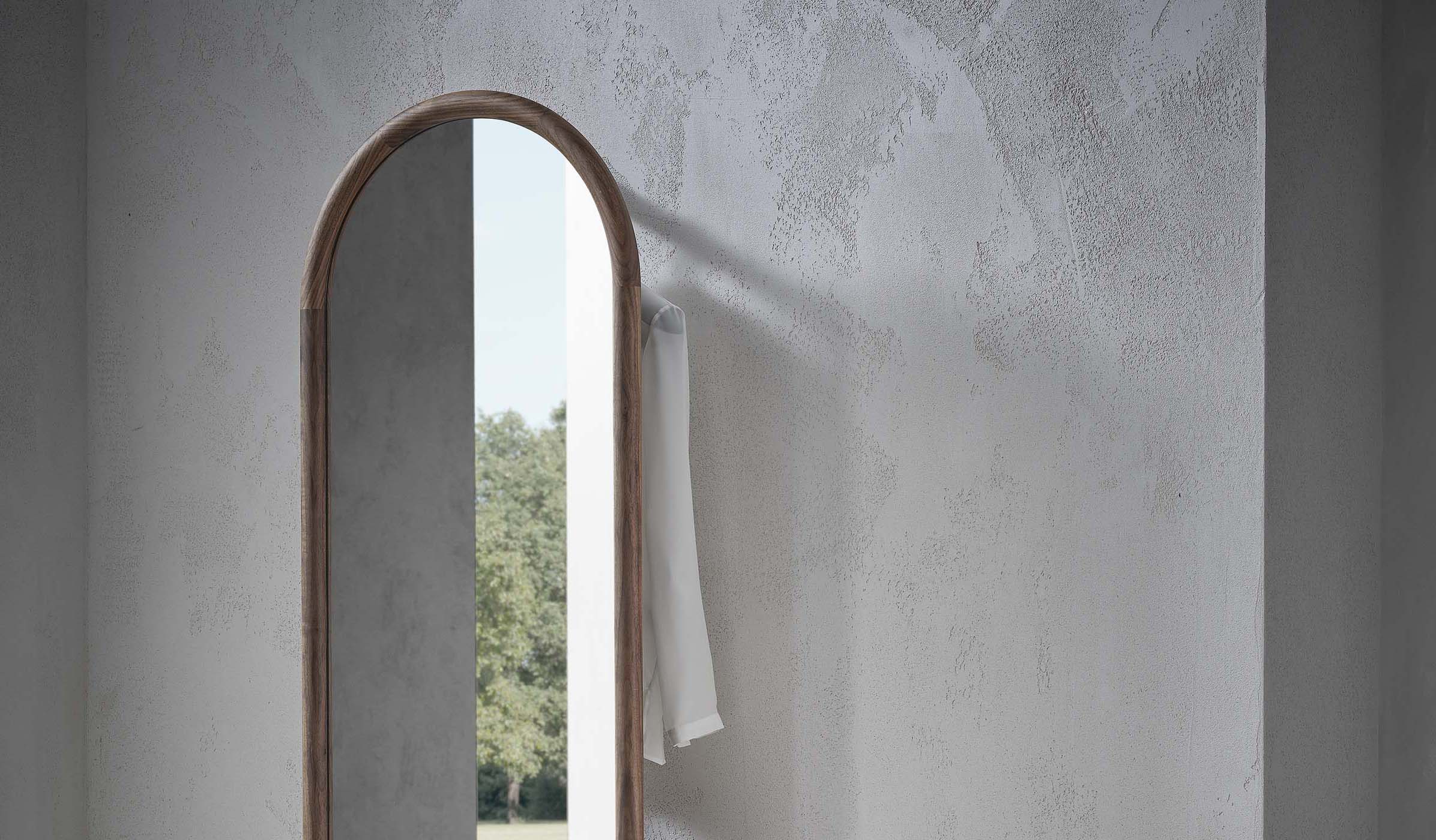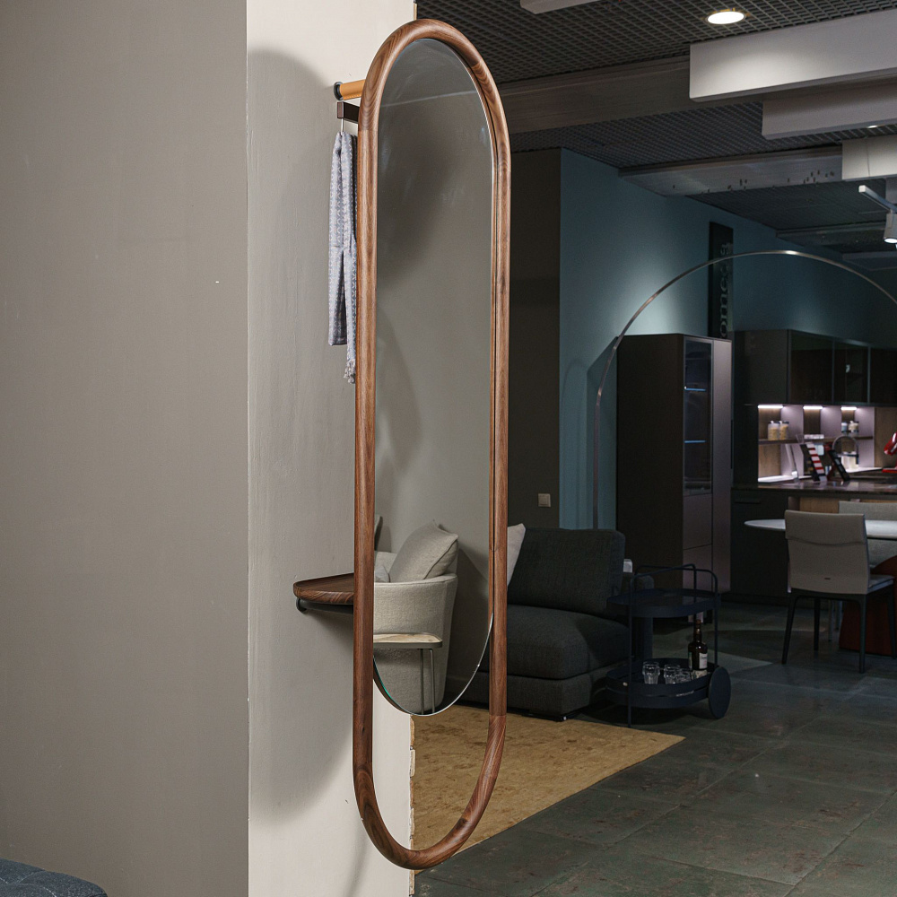 Эллиптическая рама зеркала изготовленная из массива ореха Canaletta, придаёт ему особый шарм и элегантность. Этот выбор материала подчёркивает естественную красоту дерева и его долговечность. Рама не только обрамляет отражающую поверхность, но и служит удобным креплением для зеркала на стене, что делает его использование максимально практичным.