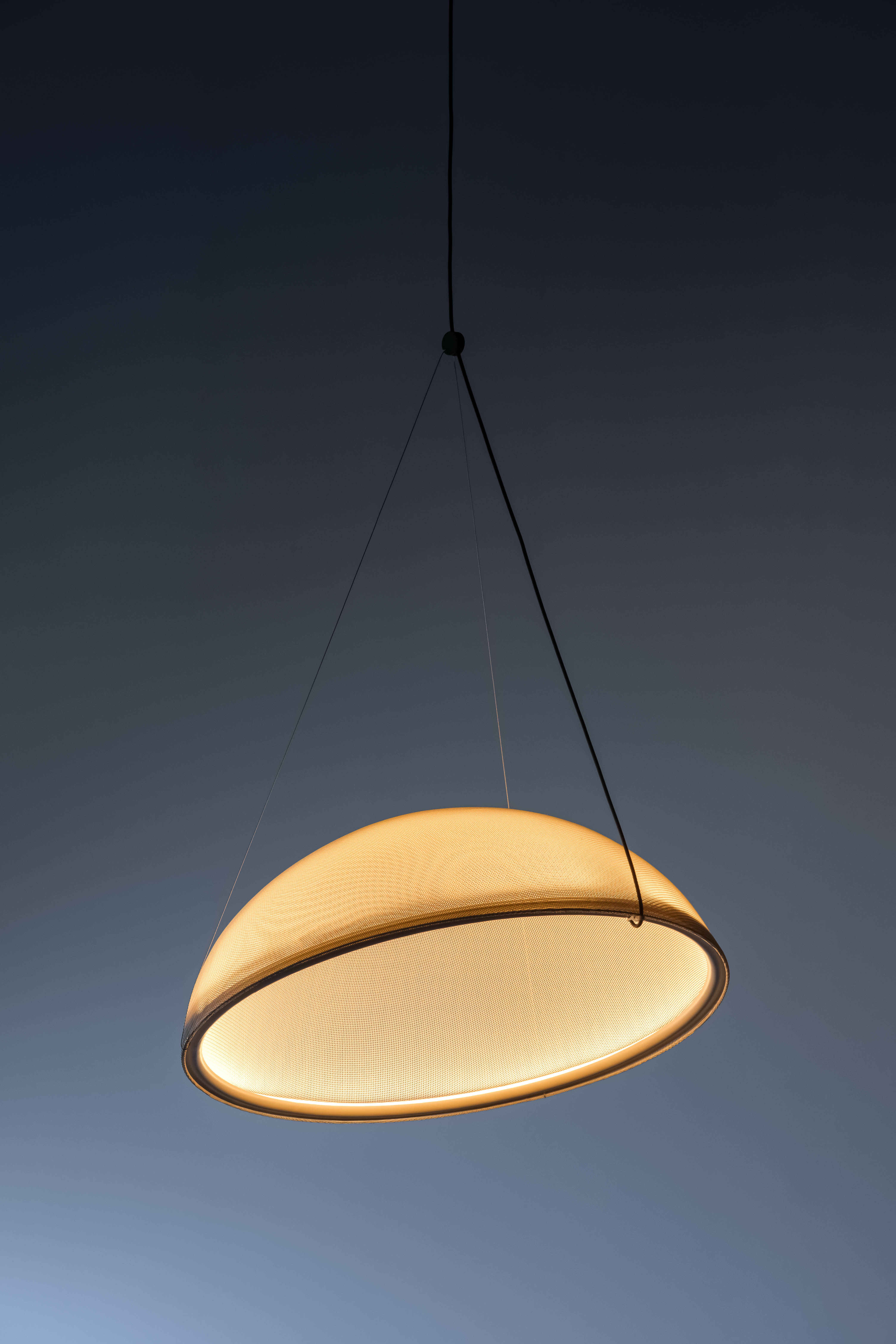 Подвесной светильник Baleira, созданный дизайнером Томасом Алонсо, представляет собой тонкое переосмысление классического купола. Вместо привычной массивной формы автор предлагает лёгкую конструкцию из стальной сетки, которая выглядит почти невесомой и словно растворяется в пространстве.