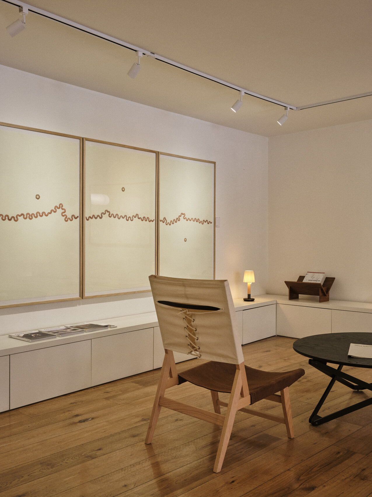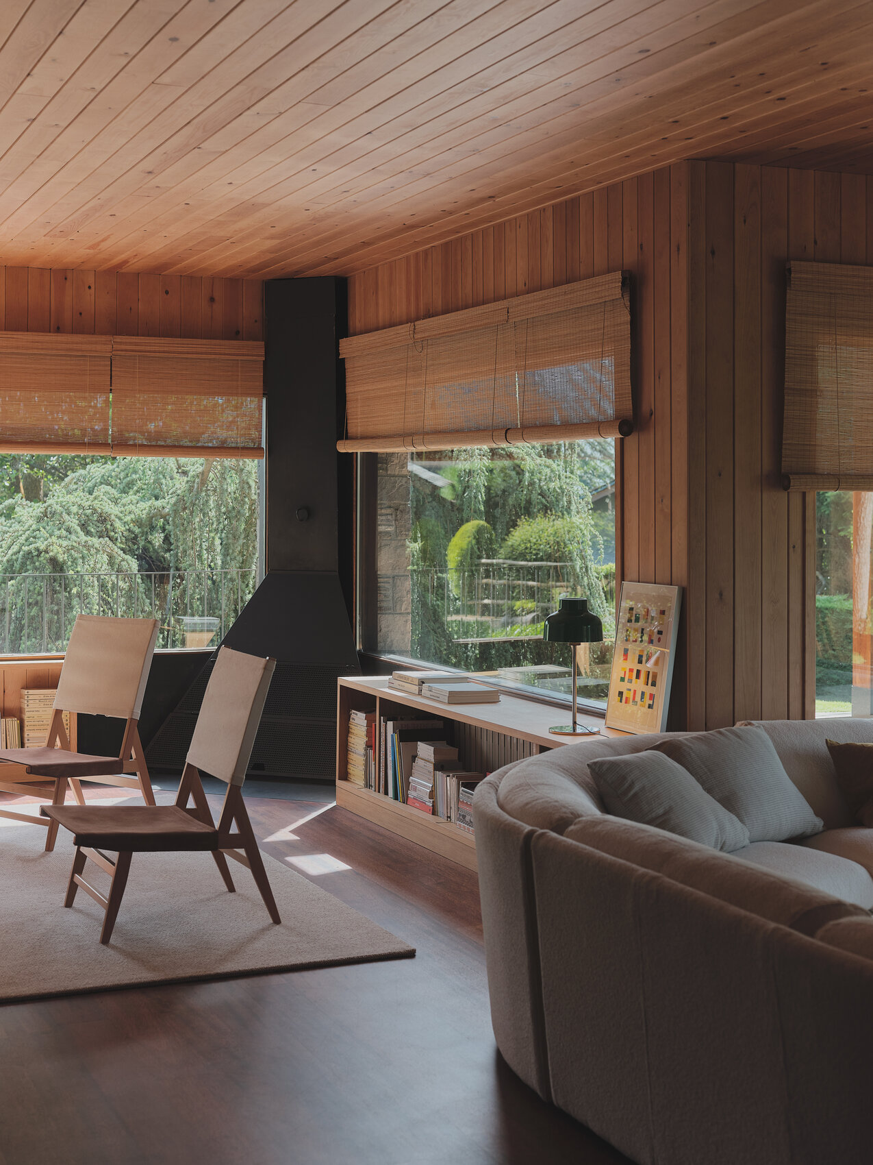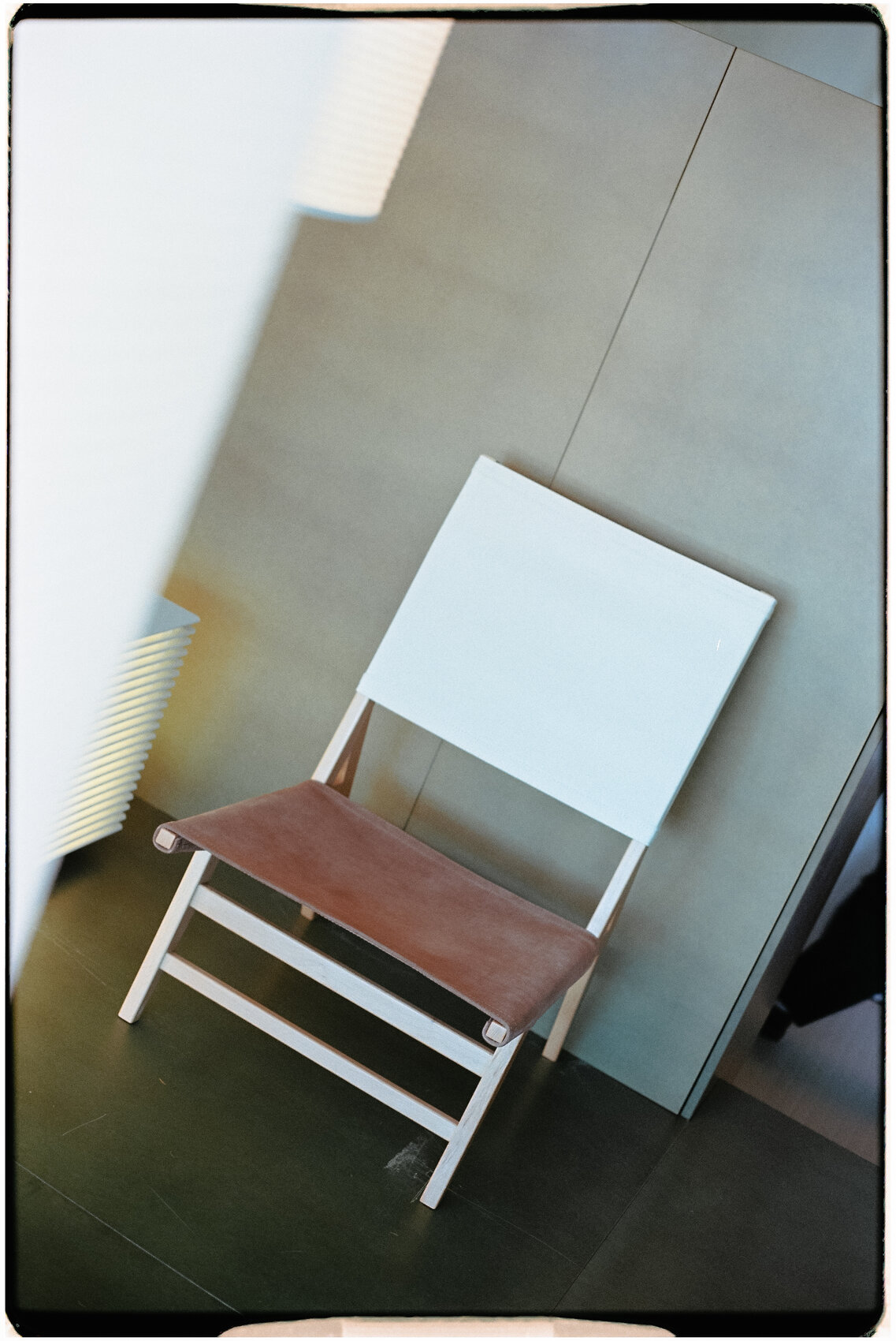 Основа стула — каркас из бука. Его конструкция построена на чёткой геометрии: спинка, сиденье и задняя ножка образуют точный треугольник. Такое решение не только обеспечивает устойчивость, но и придаёт предмету особую графическую выразительность.