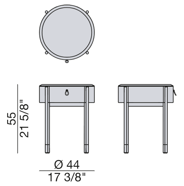Основание тумбы выполнено из металла Bronzoro, что придаёт ей надёжность и устойчивость. Ножки из брашированной латуни добавляют изделию роскошный вид и подчёркивают его премиальный статус. Эти детали не только функциональны, но и эстетически привлекательны, создавая гармоничный образ тумбы Bayus Tondo 44.