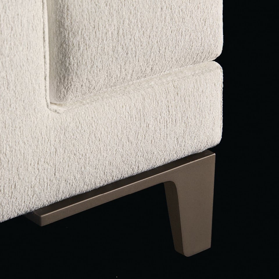 Одним из ключевых элементов коллекции являются металлические ножки, которые не только придают изделиям прочность и долговечность, но и подчеркивают их современный и стильный вид. Эти ножки добавляют диванам динамичность и элегантность, делая их настоящими произведениями искусства. Опциональный базовый профиль, соединяющий ножки, придает системе завершенный и единый вид, подчеркивая ее продуманность и целостность.