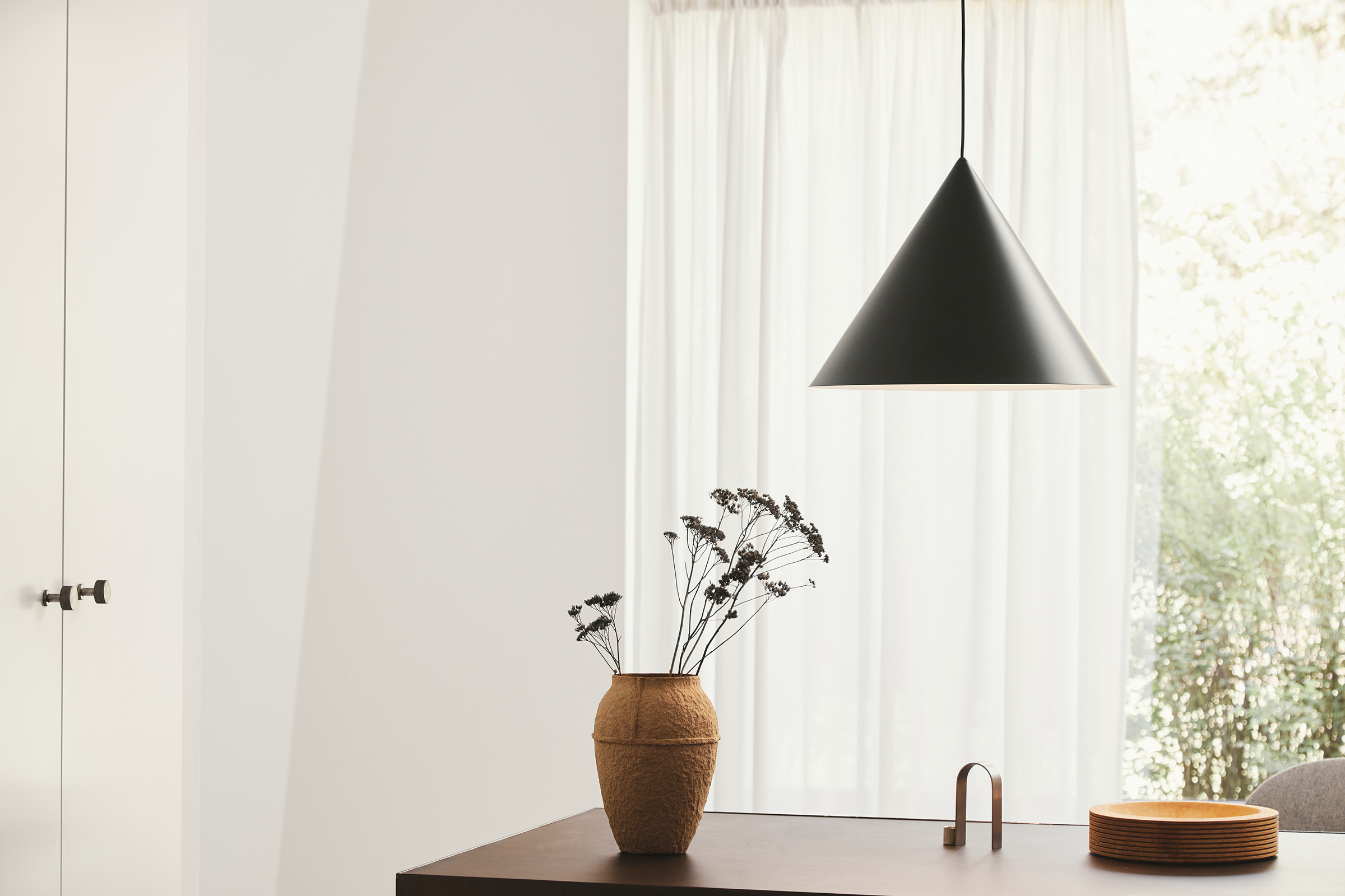 Подвесной светильник Benjamin pendant, созданный дизайнером Benny Frandsen, сочетает в себе элегантную простоту и функциональность. Его узнаваемая коническая форма придаёт модели особый шарм: лаконичный силуэт без избыточных деталей выглядит современно и при этом не теряет актуальности с годами.