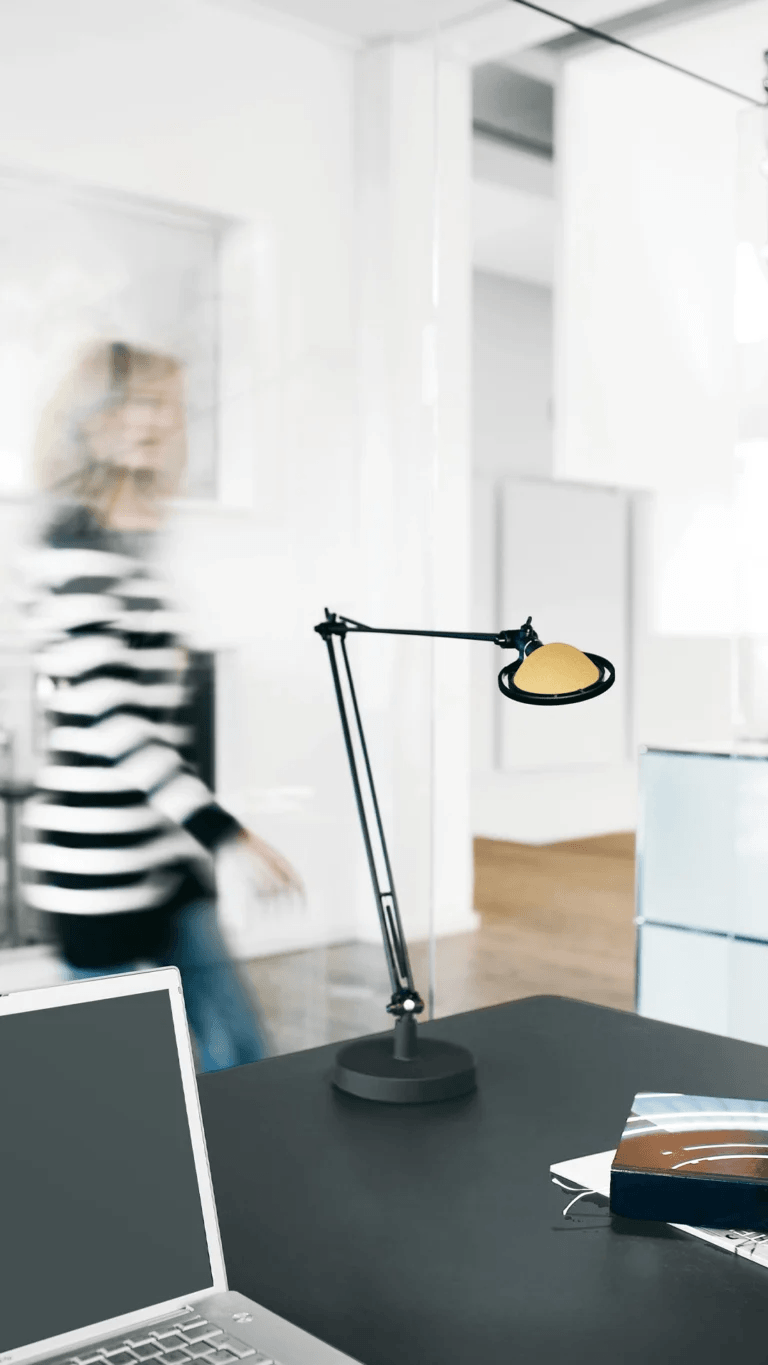 Одной из ключевых особенностей светильника является наличие шарнирных рычагов с плавным ходом. Это позволяет легко регулировать высоту и угол наклона лампы, обеспечивая оптимальное освещение в любом положении. Голова светильника поворачивается на 360 градусов, что даёт возможность направить свет в нужную сторону, создавая равномерное и комфортное освещение. Такая гибкость позволяет адаптировать светильник под различные задачи и условия, будь то работа за столом, чтение или отдых.