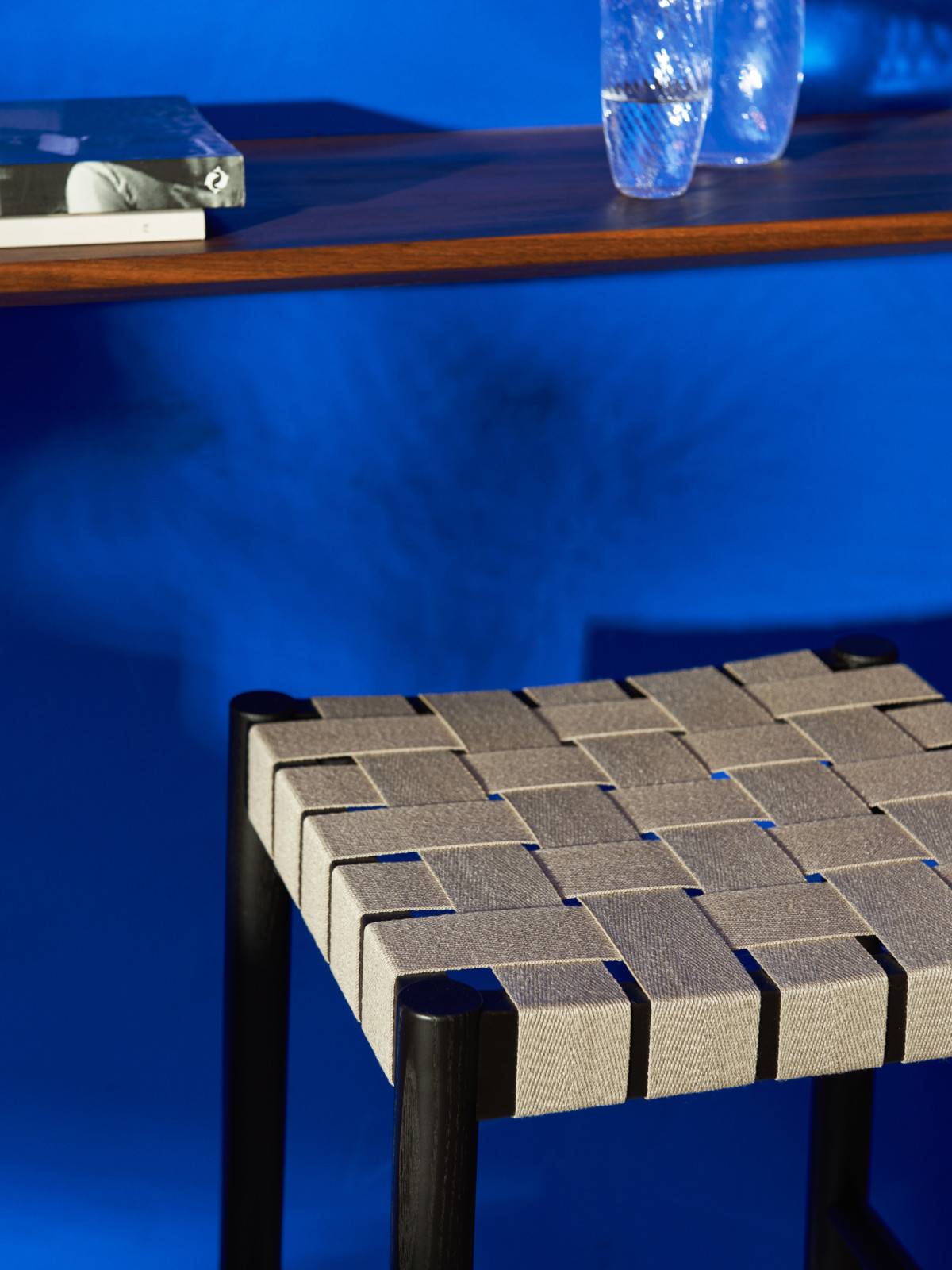 Чёрный лакированный ясень + чёрная льняная сетка