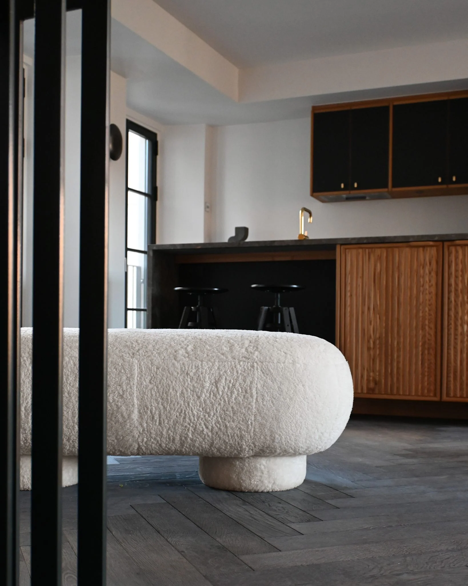 Альтернативные варианты обивки — воздушное полотно Bouclé и нежная овчина Off-White Sheepskin — добавляют коллекции многогранности. Первое привносит современную лёгкость, второе — теплоту и уют, но в каждом случае мебель сохраняет свою скульптурную выразительность.