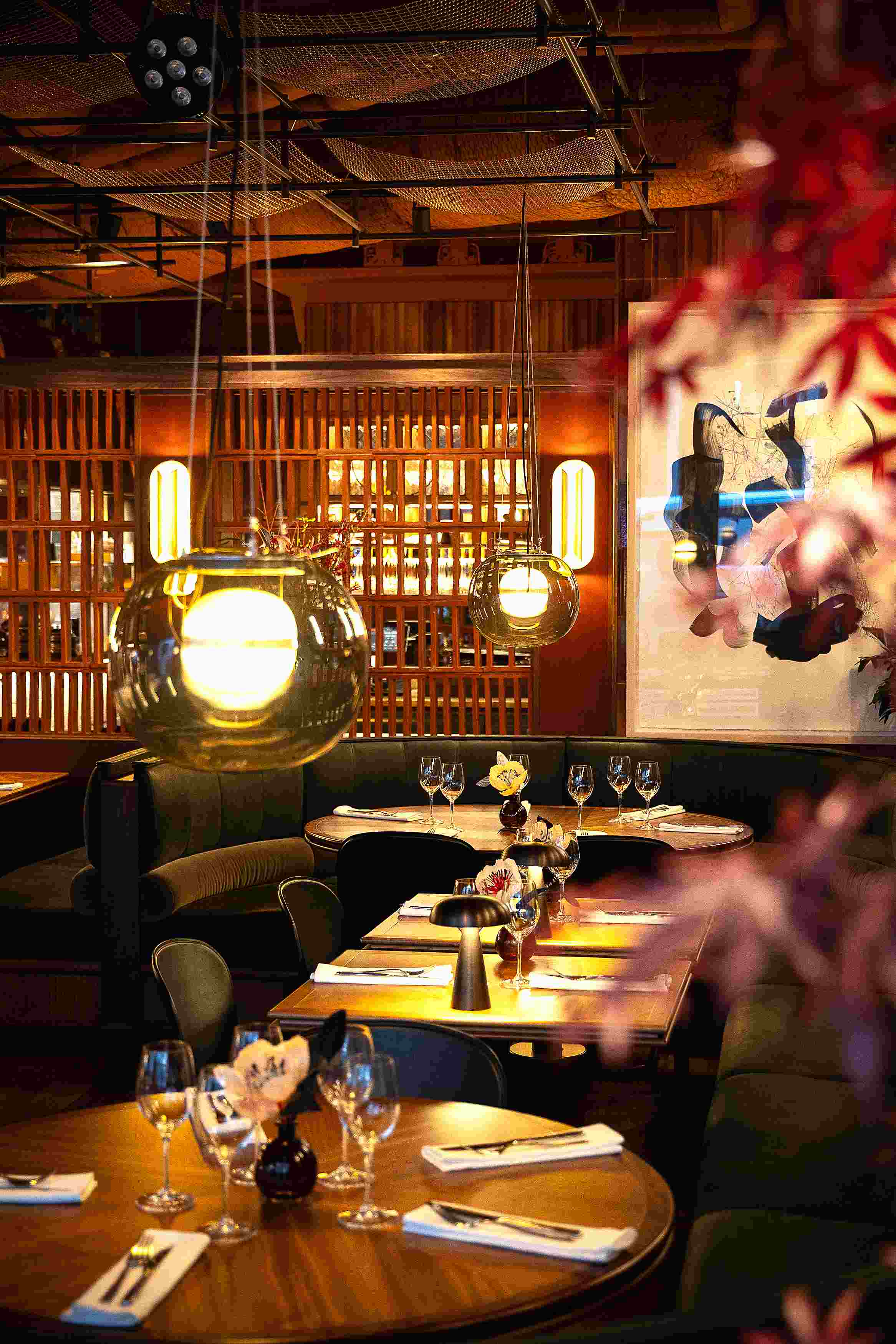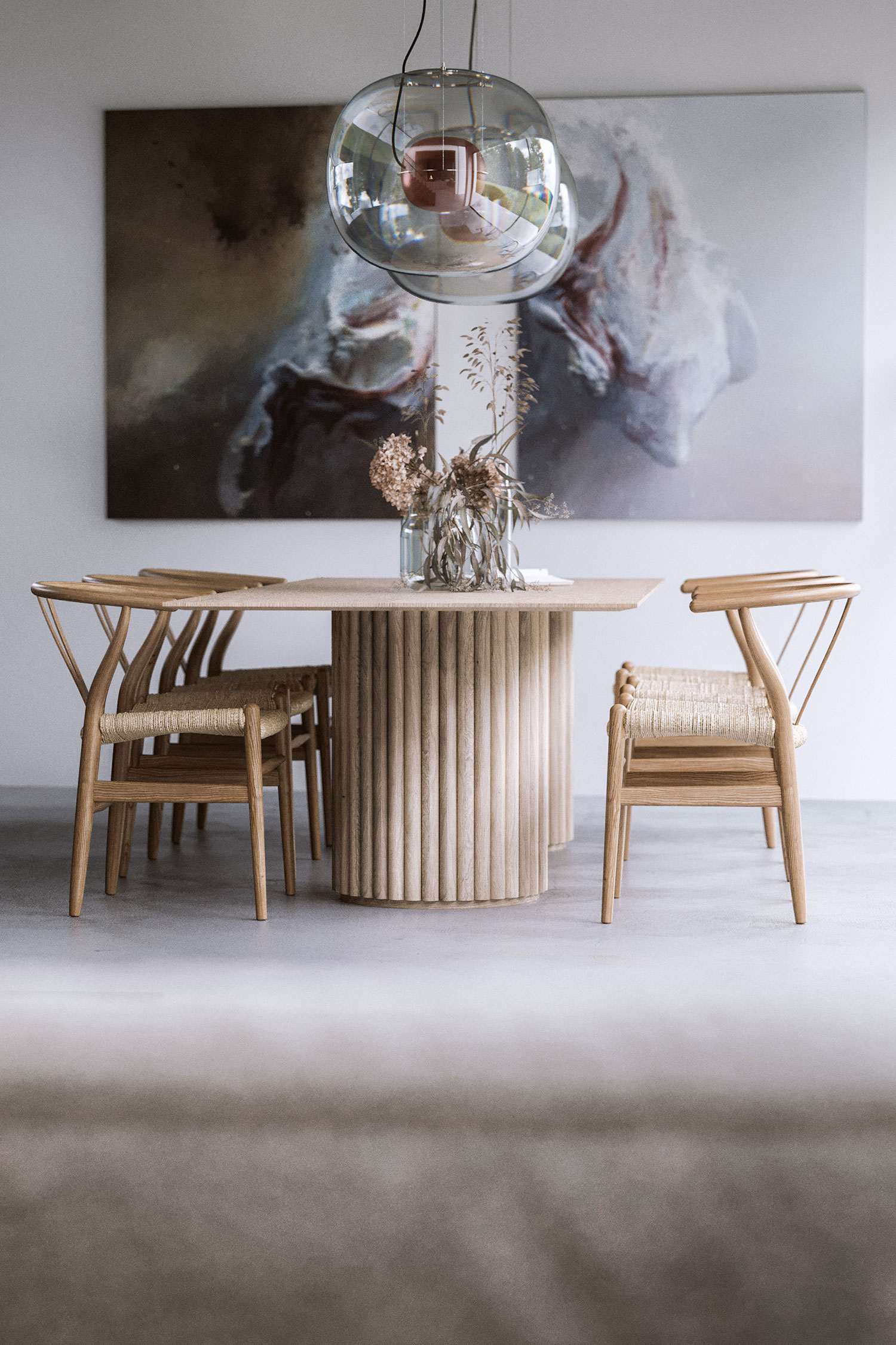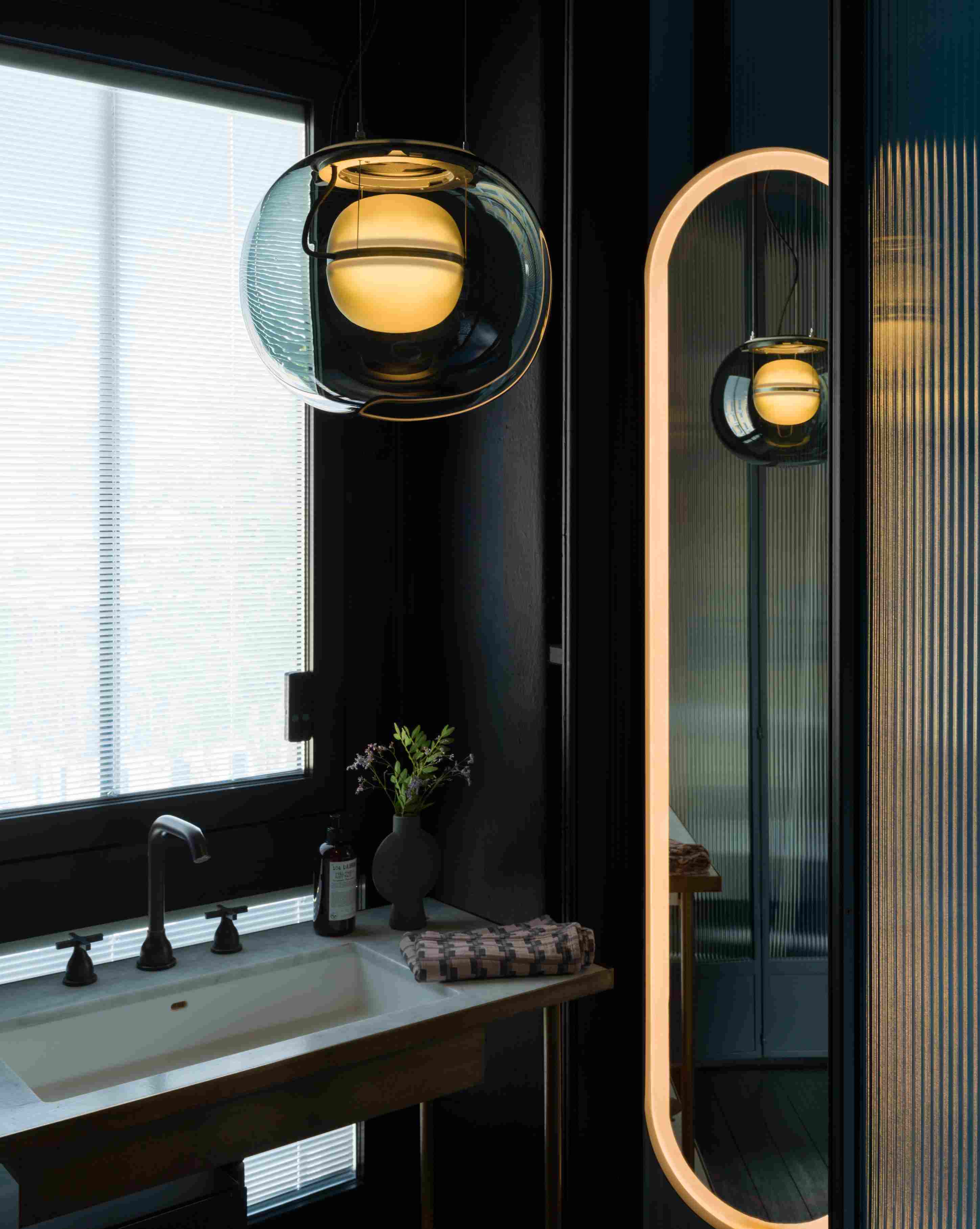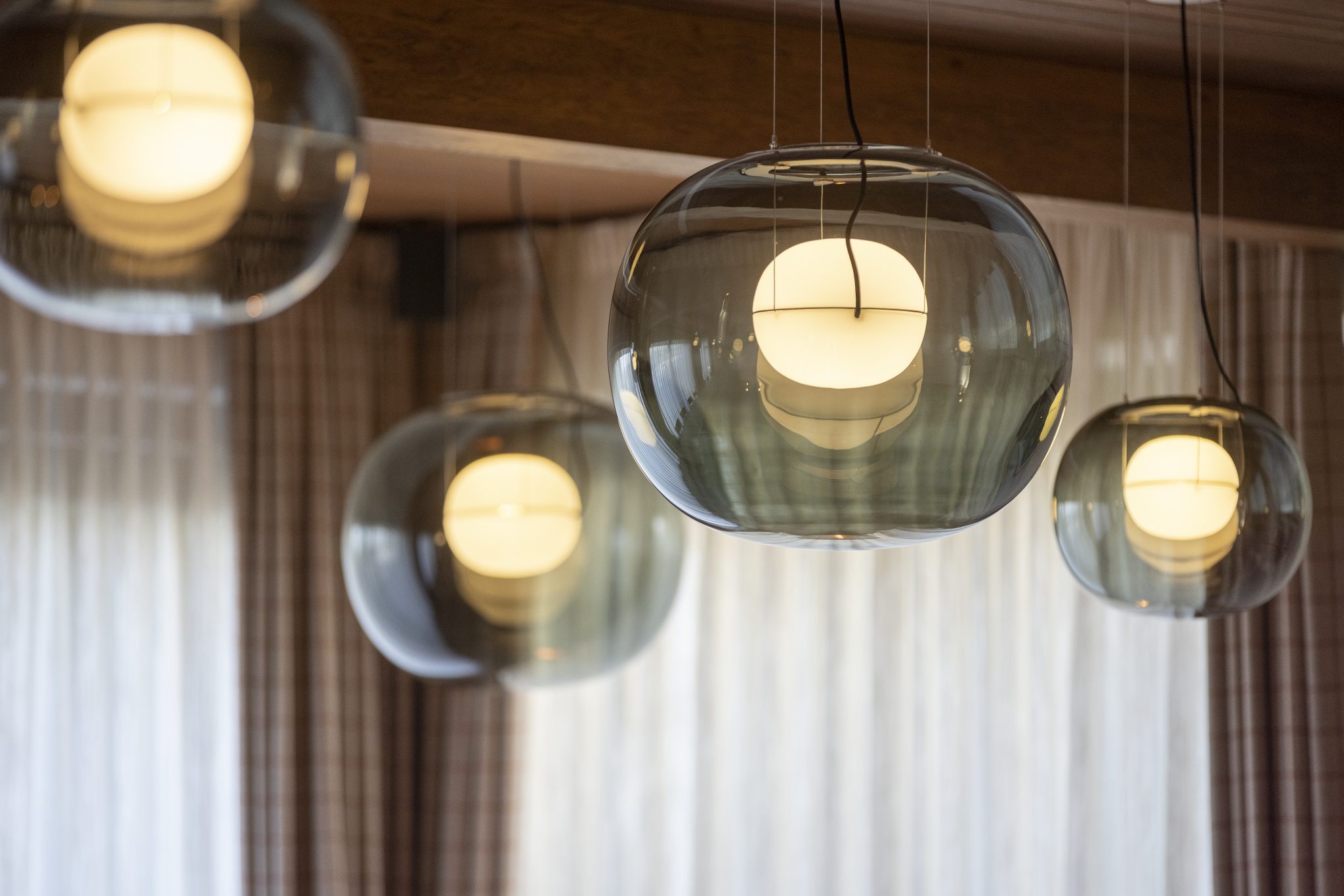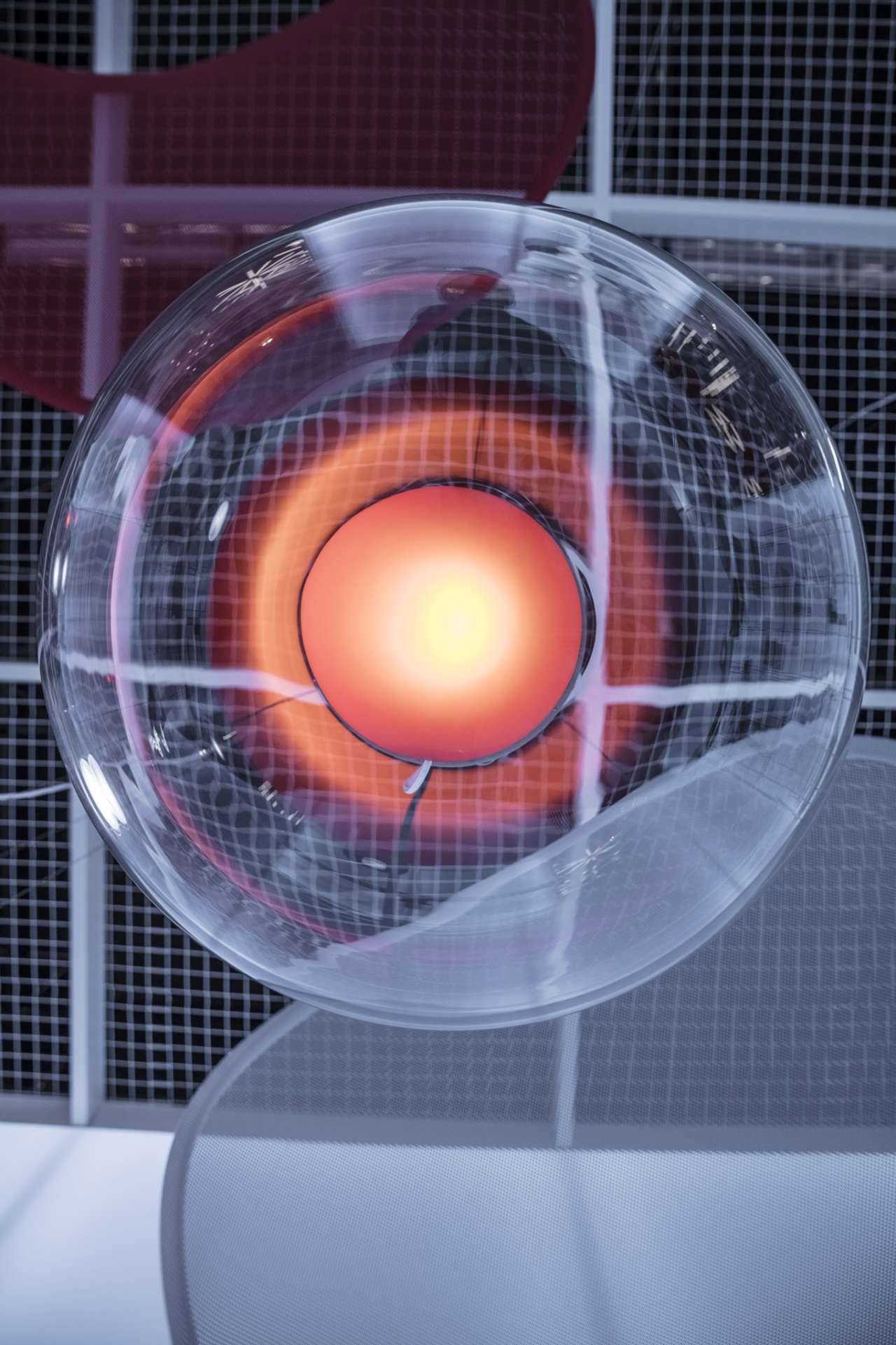 Внешняя стеклянная сфера крепится к подвесным тросам из нержавеющей стали посредством специального механизма. Он позволяет легко разбирать и собирать светильник. Это происходит путём отпускания рычагов на верхней части кольца.