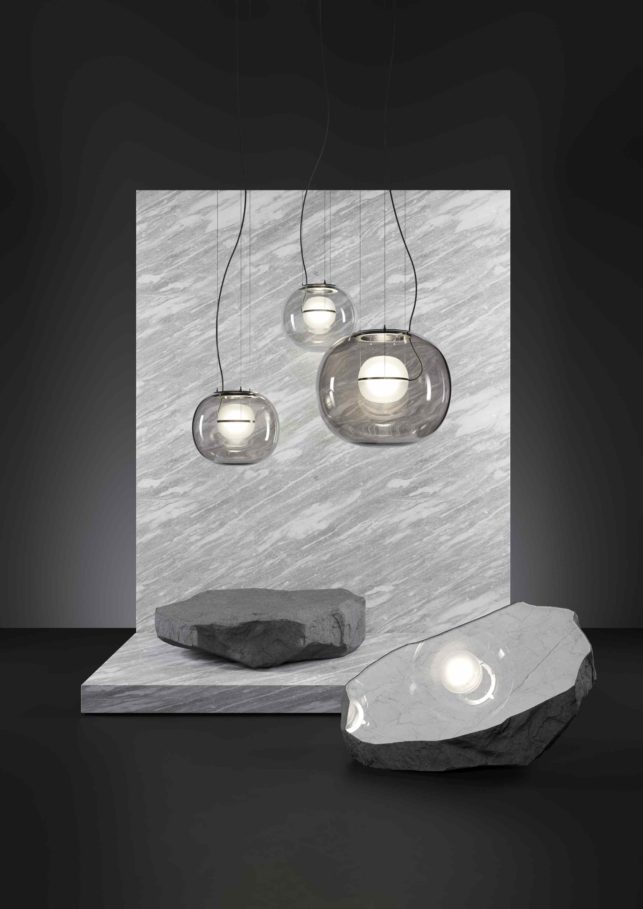 Коллекция Big One представлена в двух размерах. Конструктивно светильник состоит из двух половин стеклянного сердечника. Они соединены фрезерованными дюралюминиевыми кольцами. В кольца встроены светодиодные модули.